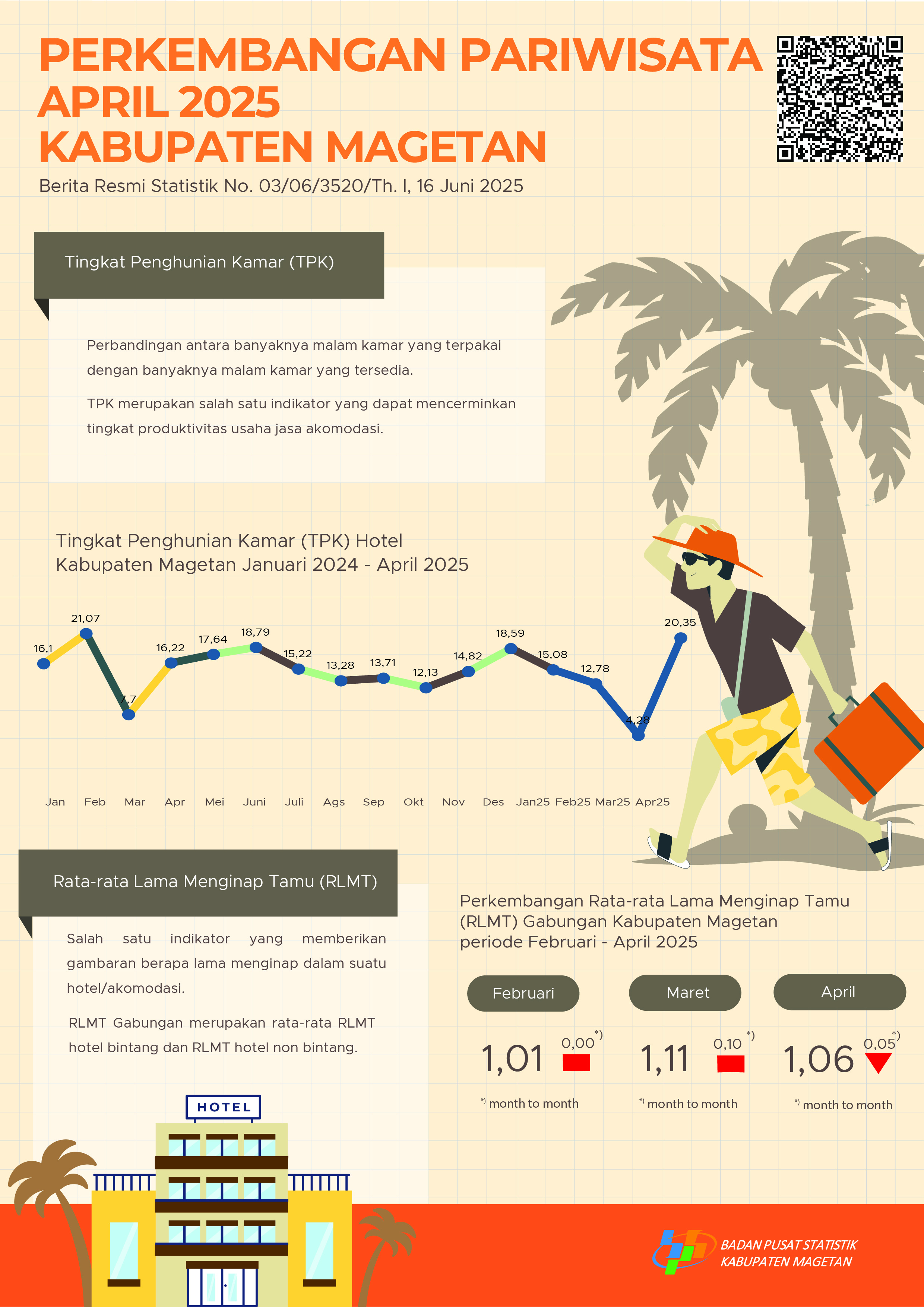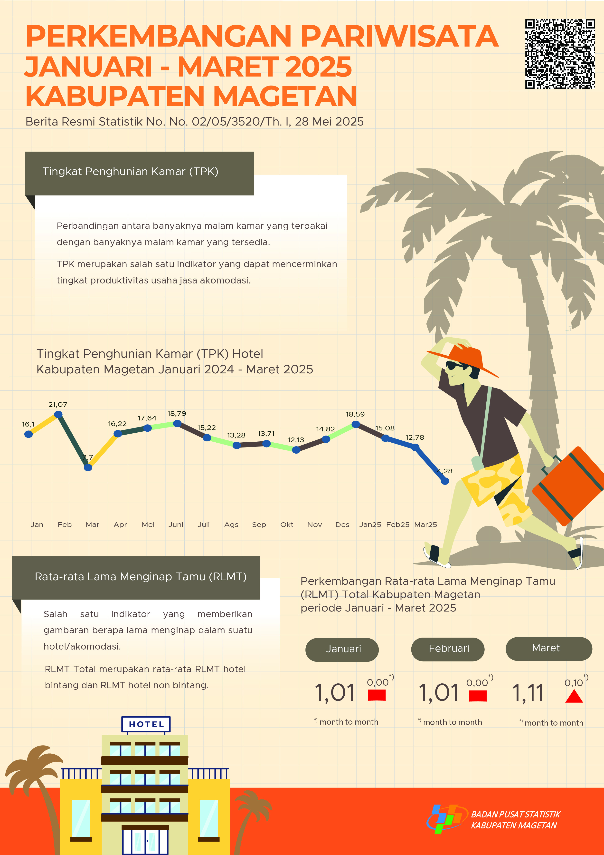 Tingkat Penghunian kamar Hotel (TPK) adalah banyaknya malam kamar yang terpakai dengan banyaknya malam kamar yang tersedia. TPK merupakan salah satu indikator yang dapat mencerminkan...