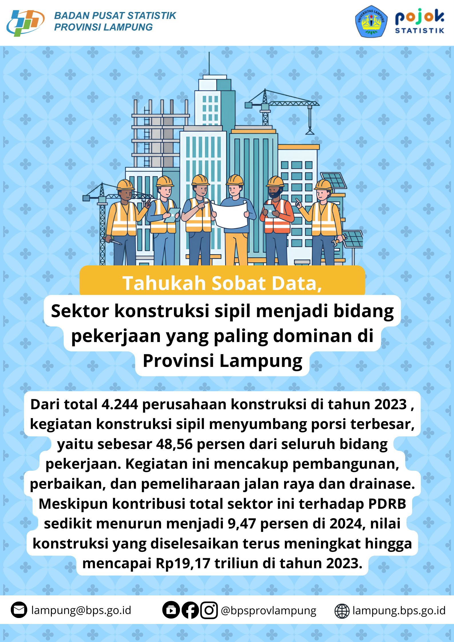 Sektor konstruksi sipil menjadi bidang pekerjaan yang paling dominan di Provinsi Lampung