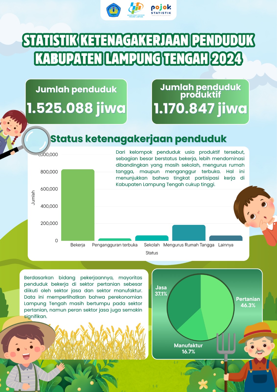 Berisikan jumlah penduduk Lampung Tengah, jumlah produktif penduduk, dan status ketenagakerjaan penduduk
