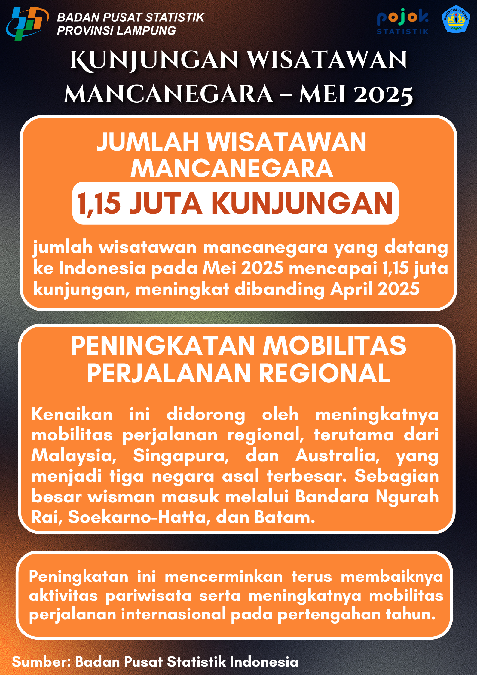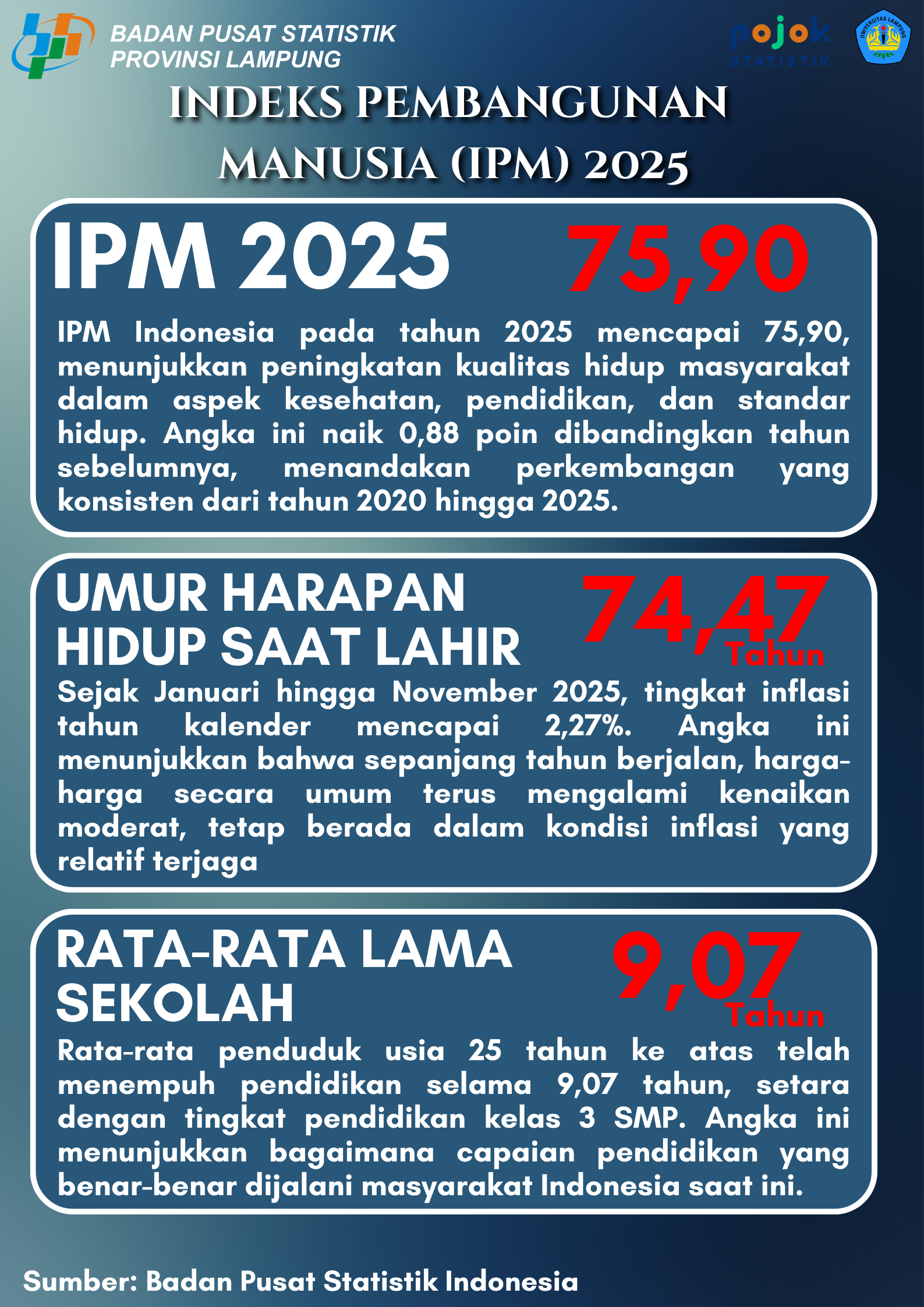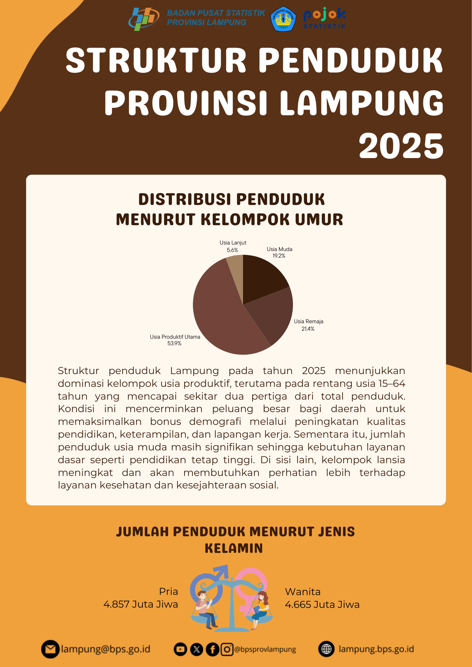 Penduduk Lampung tahun 2025 mencapai 9,52 juta jiwa, dengan komposisi didominasi oleh kelompok usia produktif (15–64 tahun). Proporsi ini menunjukkan potensi besar bonus demografi yang...