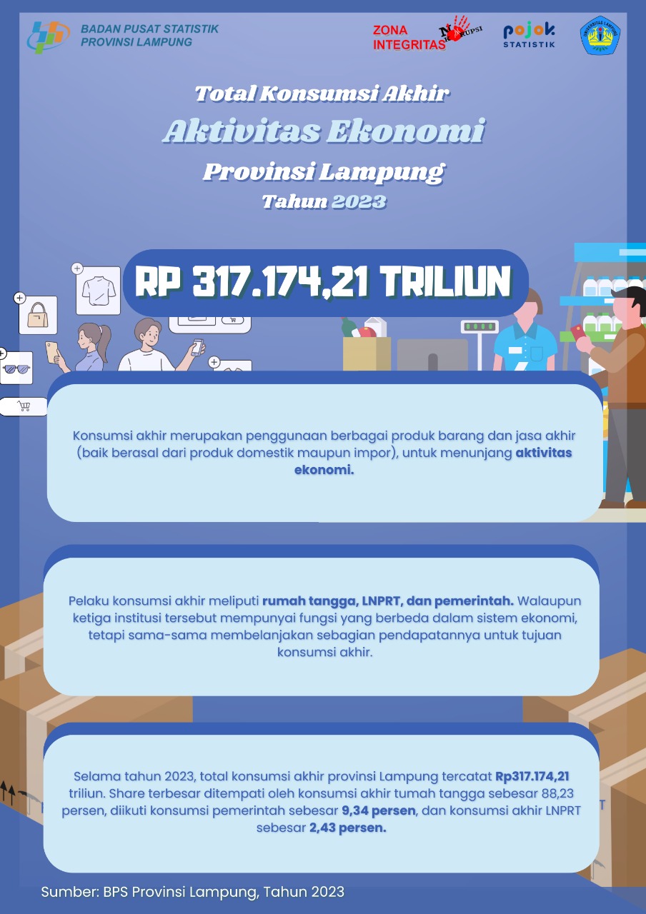 Total konsumsi akhir sebagai salah satu indikator utama aktivitas ekonomi di Provinsi Lampung tahun 2023. Berdasarkan data BPS Provinsi Lampung, total konsumsi akhir tercatat mencapai...