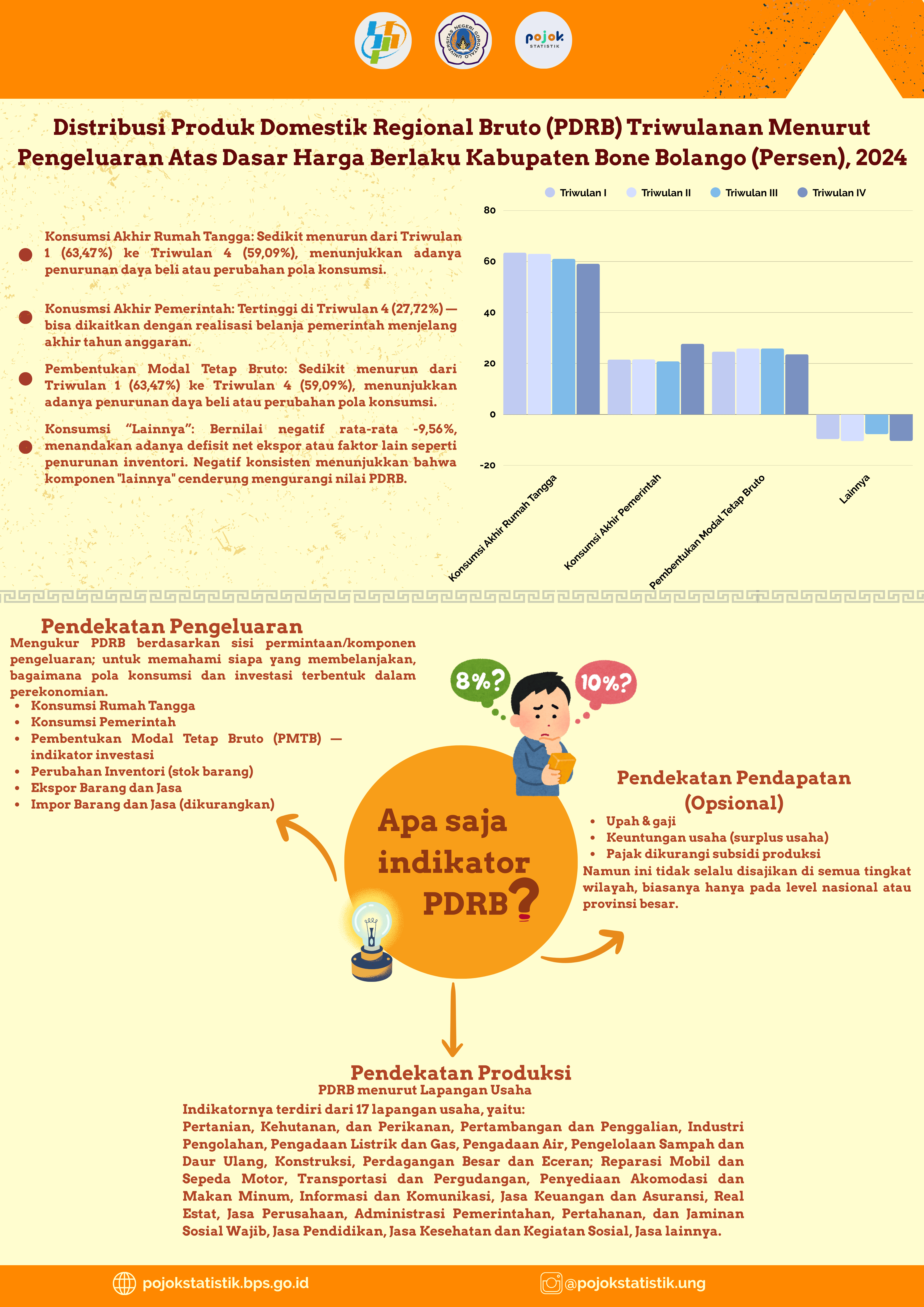 Mengukur PDRB berdasarkan sisi permintaan/komponen pengeluaran; untuk memahami siapa yang membelanjakan, bagaimana pola konsumsi dan investasi terbentuk dalam perekonomian.