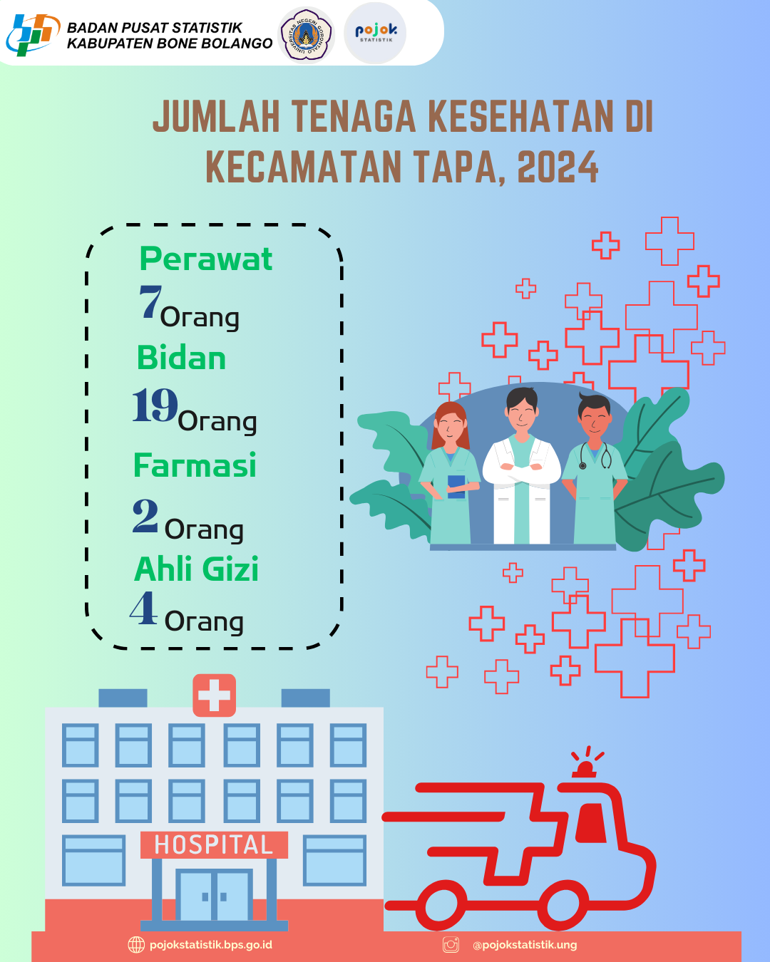 "Berapa banyak tenaga kesehatan yang melayani di Kecamatan Tapa? Yuk intip data lengkapnya di infografis ini! Data yang akurat jadi langkah awal untuk layanan kesehatan...