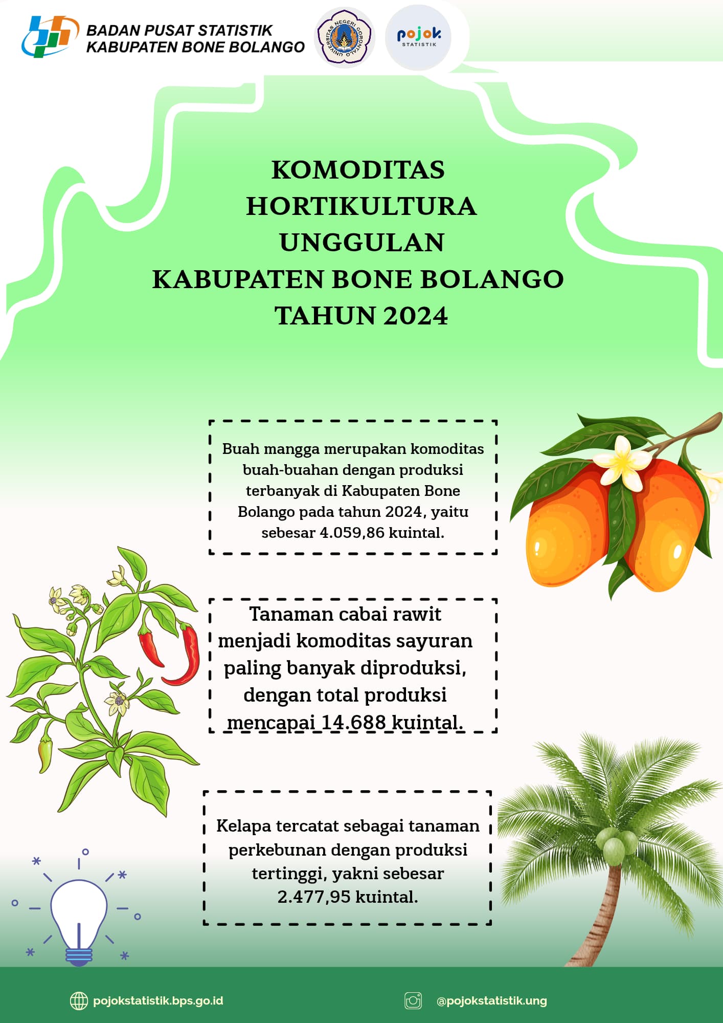 Tahukah kamu? Kabupaten Bone Bolango memiliki potensi besar dalam sektor hortikultura! Tahun 2024, beberapa komoditas unggulan seperti cabai rawit, tomat, dan bawang merah menempati posisi...