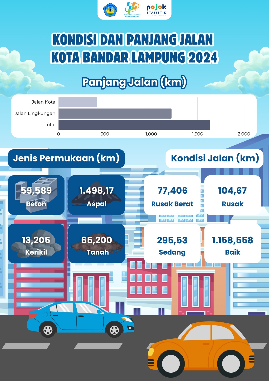 Kondisi, panjang jalan, jenis permukaan , dan kondisi jalan