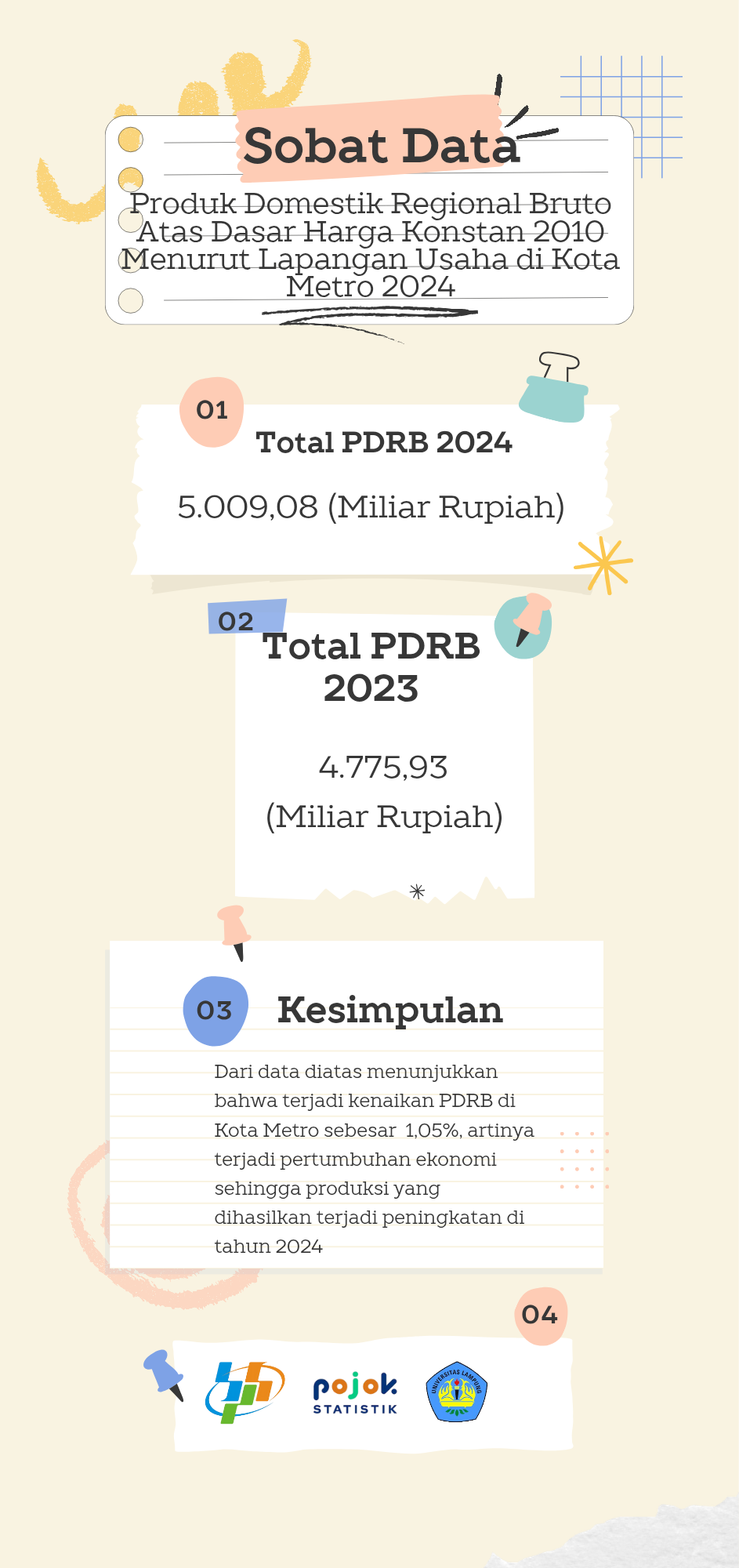 Berisi data perbandingan PDRB dari tahun 2023-2024 di kota metro