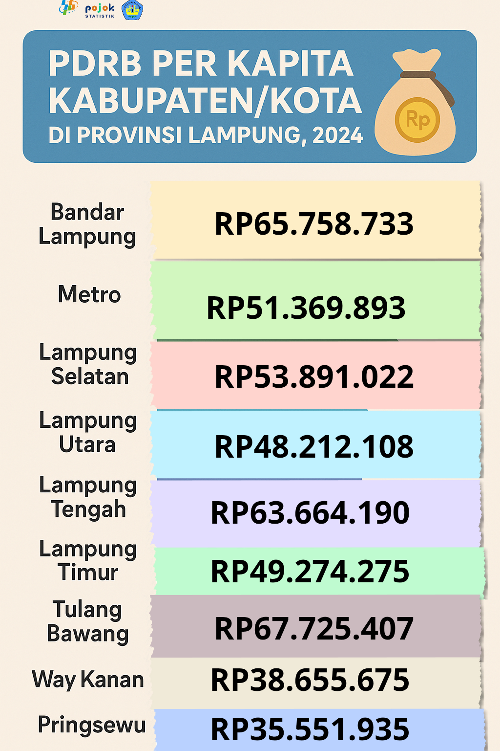 Informasi perihal data pdrb di beberapa kabupaten/kota Bandar Lampung tahun 2024