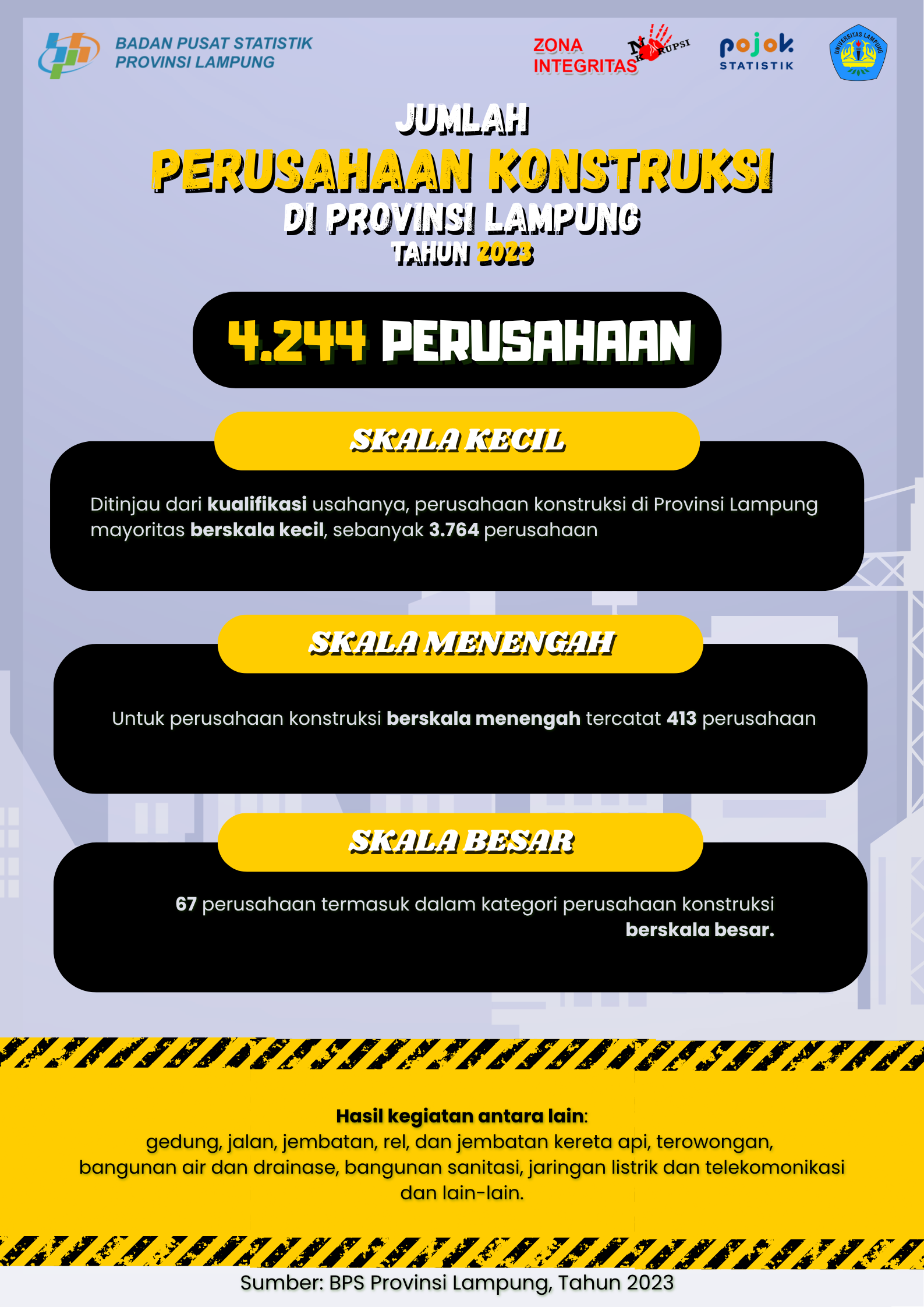 Perusahaan Konstruksi adalah suatu badan hukum/badan usaha dari sejumlah perusahaan konstruksi yang terdaftar di wilayah hukum Provinsi Lampung dengan status aktif, baik aktif lama maupun...