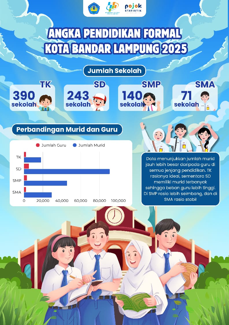 Berisikan jumlah sekolah di Kota Bandar Lampung dan perbandingan jumlah murid dan guru