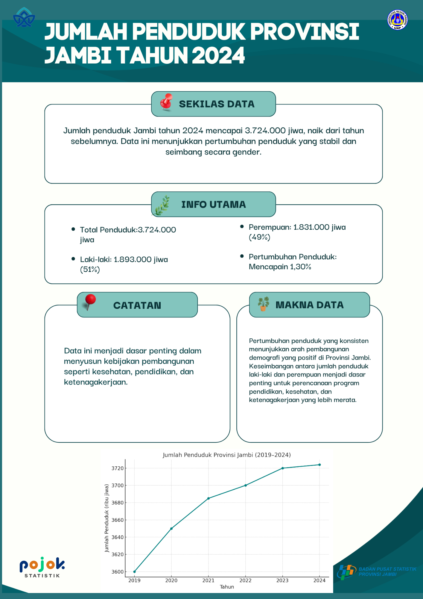 Tahukah kamu berapa jumlah penduduk Provinsi Jambi pada tahun 2024?? Yuuk kita cari tahu di infografisi ini!