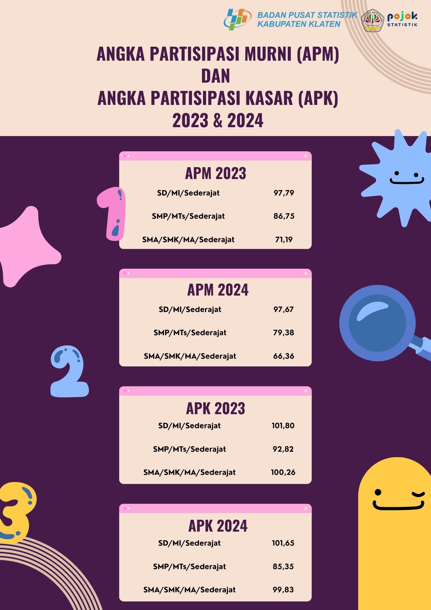 Angka Partisipasi Murni (APM) DAN Angka Partisipasi Kasar (APK) Kabupaten Klaten 2023 & 2024