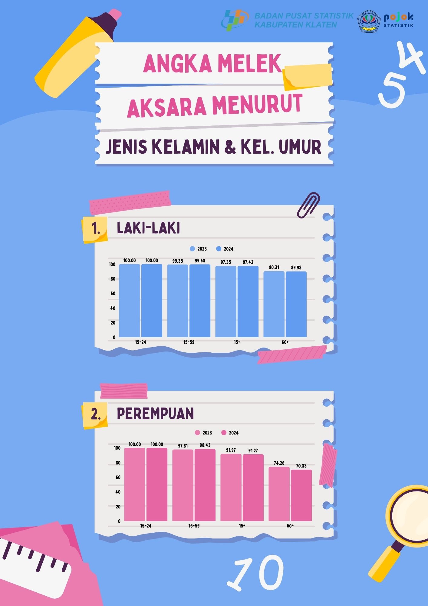 Angka Melek Aksara Menurut Janis Kelamin dan Umur Kabupaten Klaten 2023-2024