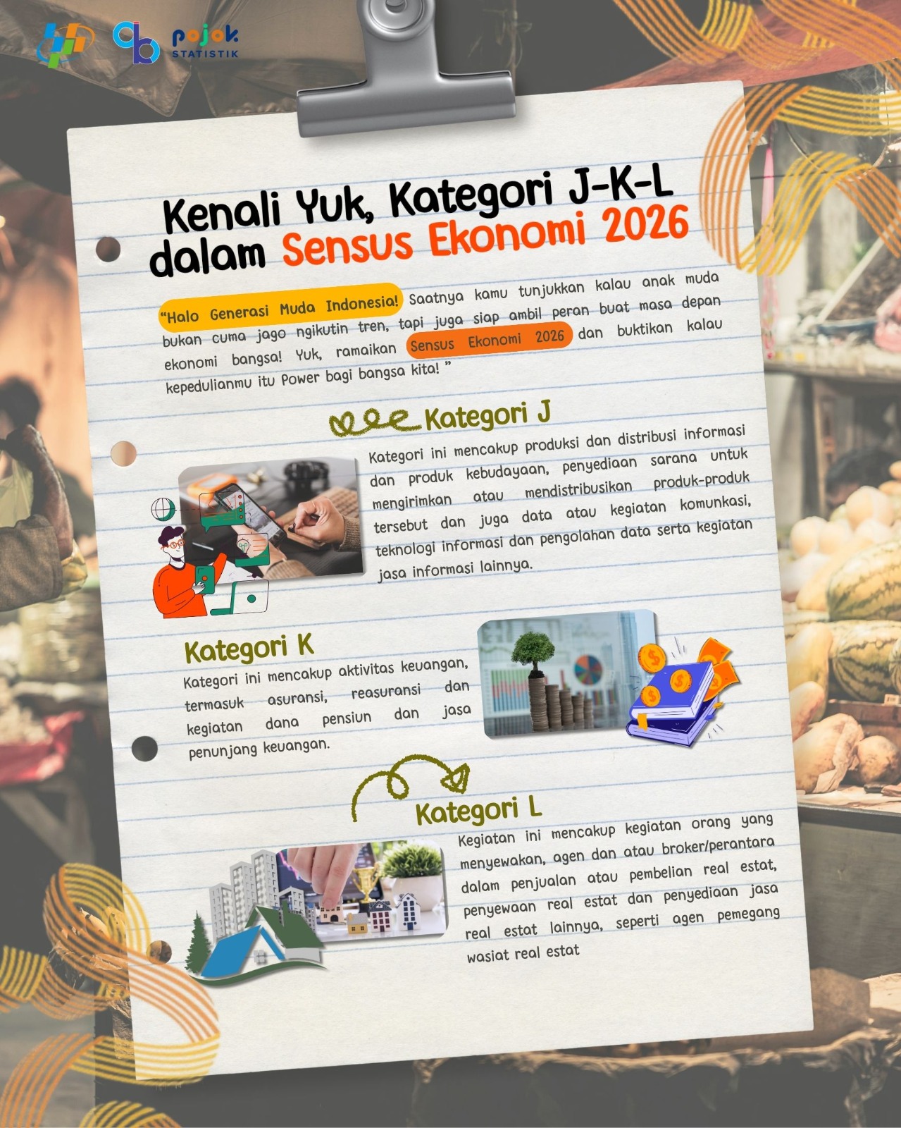 Cakupan Sensus Ekonomi Tahun 2025 diantaranya adalah kategori J, K, dan L