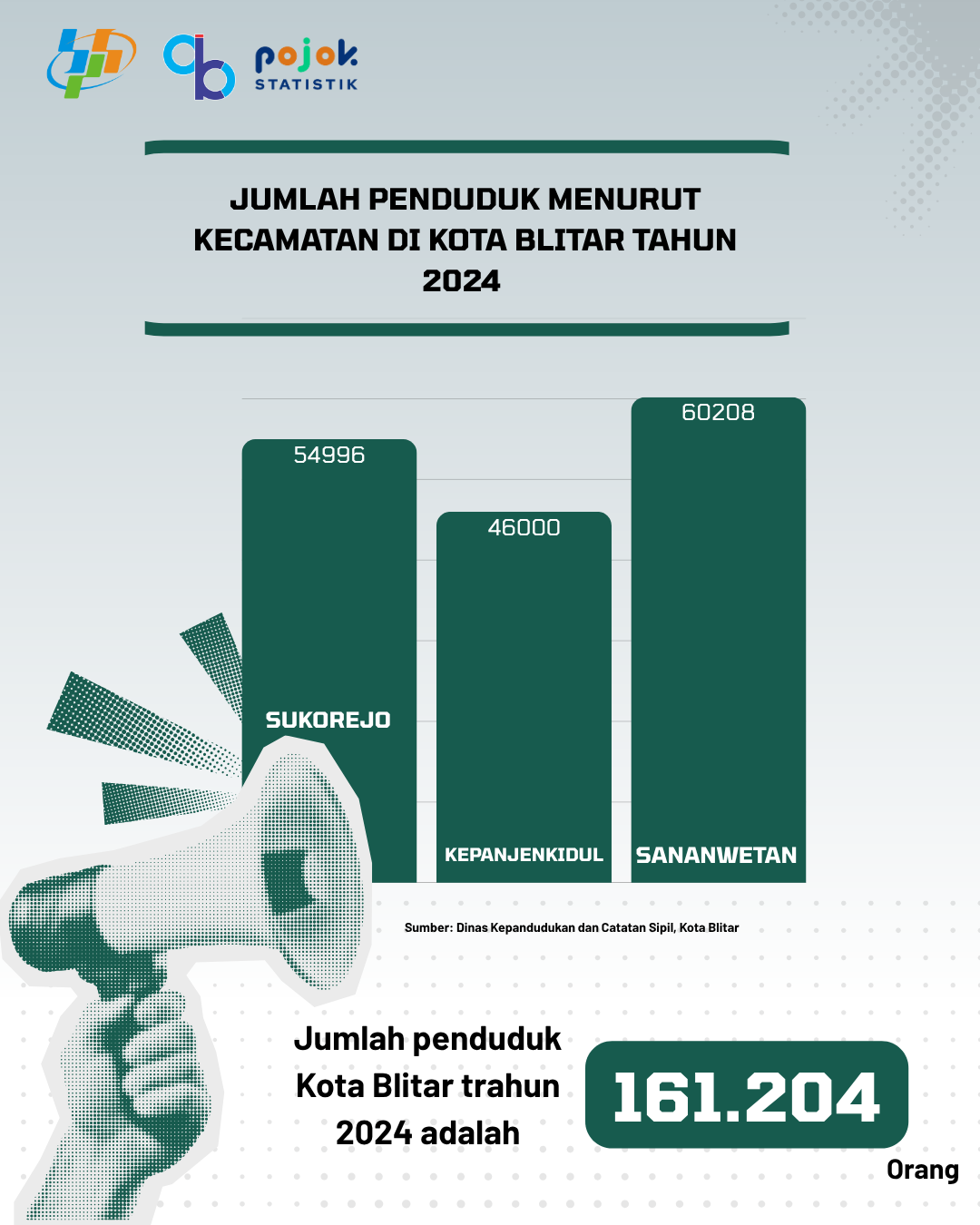Jumlah Penduduk Menurut Kecamatan Kota Blitar Tahun 2024