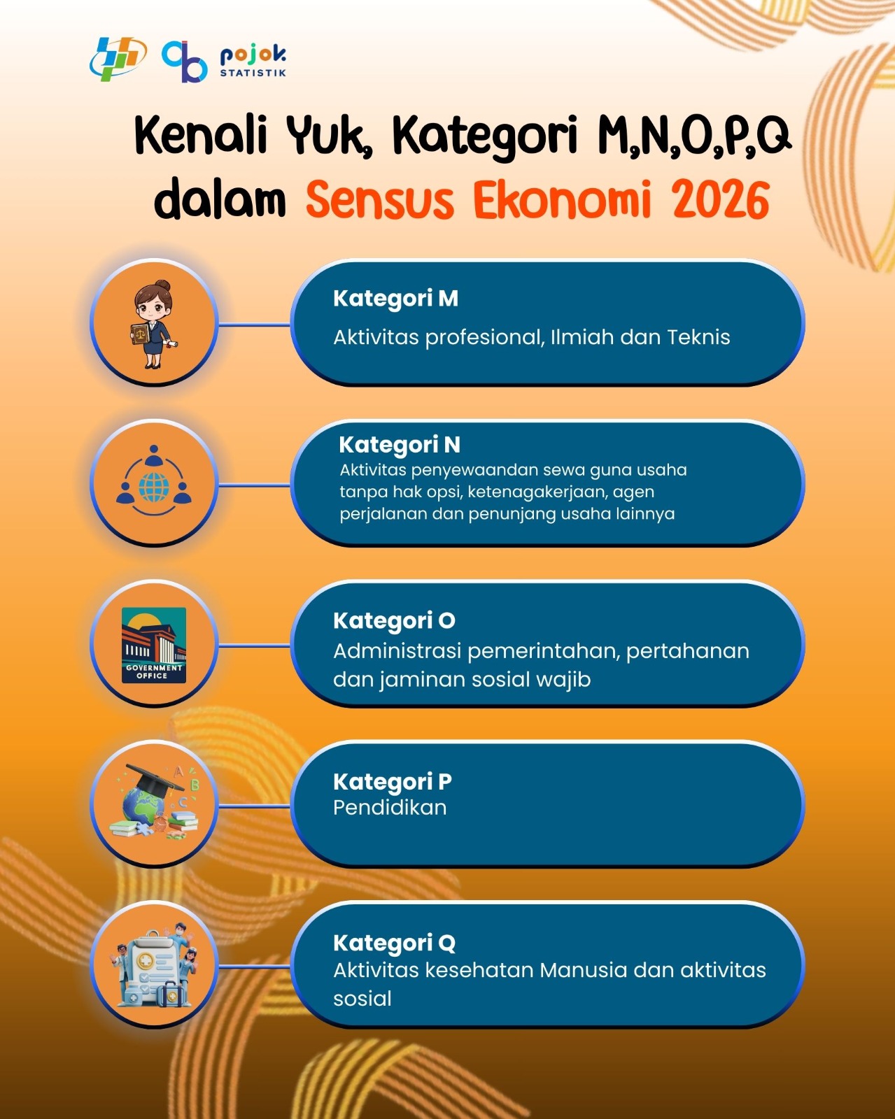 Cakupan Sensus Ekonomi 2026 lainnya adalah kategori M-Q