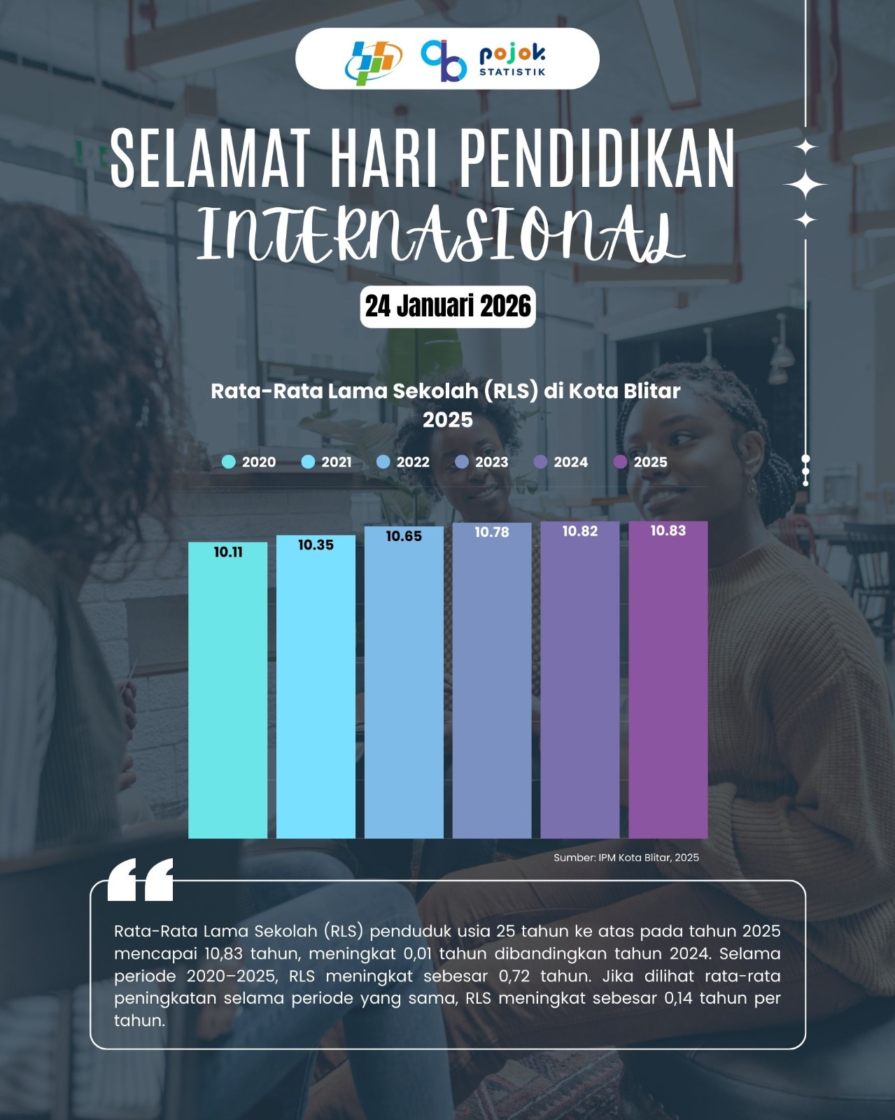 Rata-rata lama sekolah penduduk usia 25 tahun keatas pada tahun 2025 mencapai 10,83 tahun. Hal ini menunjukkan bahwa tingkat pendidikan penduduk Kota Blitar pada tingkat...