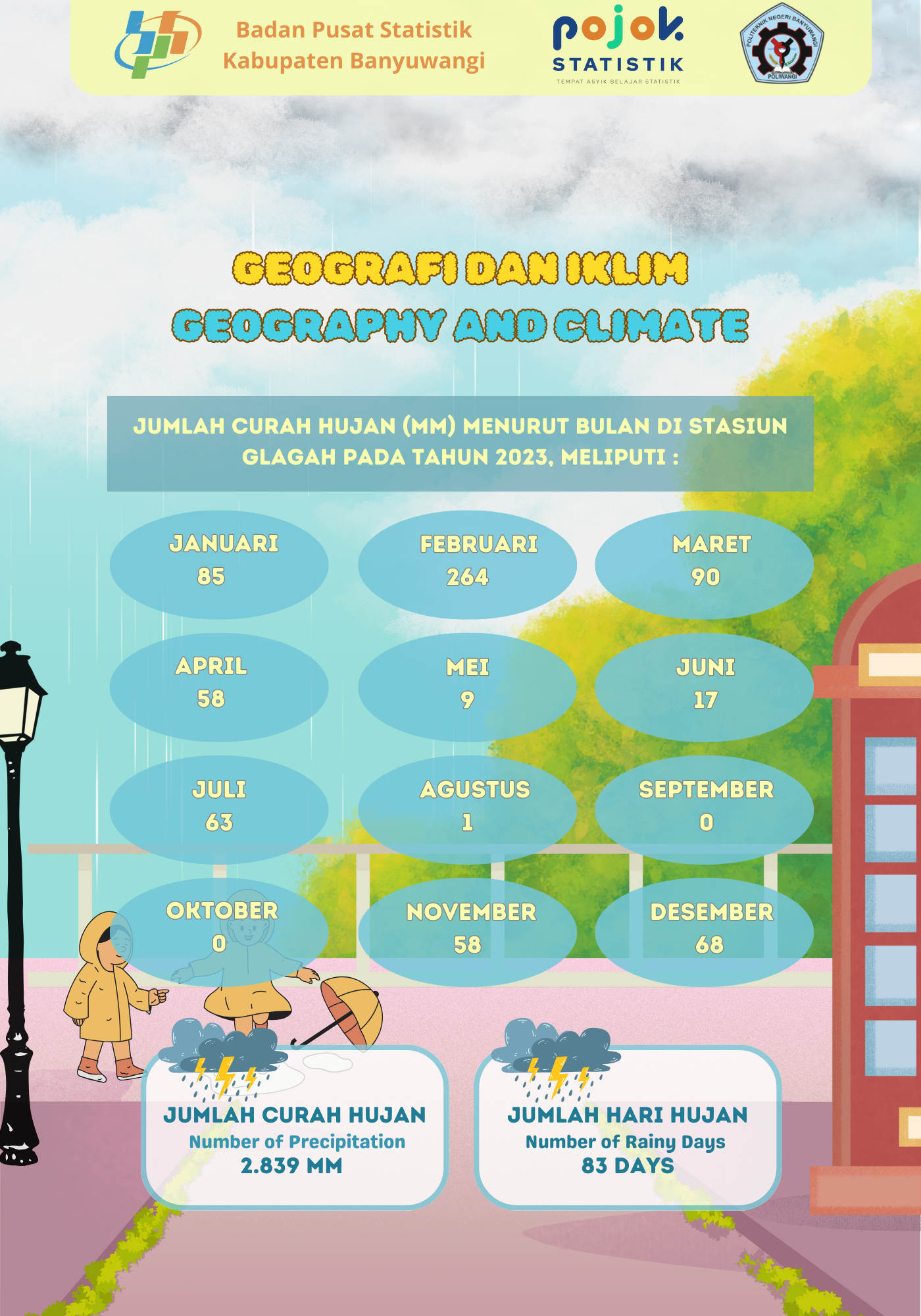 Pada Infografis Geografi dan Iklim Kecamatan Glagah ini menjelaskan mengenai jumlah curah hujan menurut bulan di Stasiun Glagah pada tahun 2023, jumlah curah hujan dan...