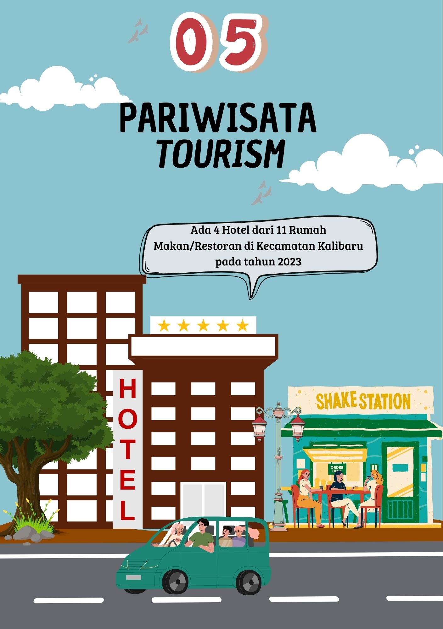 Pada infografis Pariwisata menunjukkan jumlah hotel serta restoran yang berada di Kecamatan Kalibaru pada tahun 2023