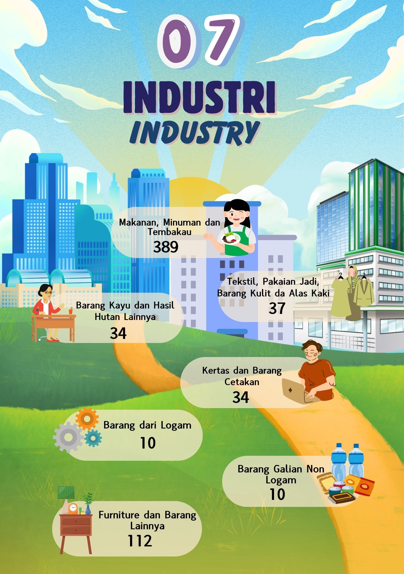 Pada infografis Industri menunjukkan jumlah tenaga kerja menurut jenis industri di Kecamatan Kalibaru pada tahun 2023