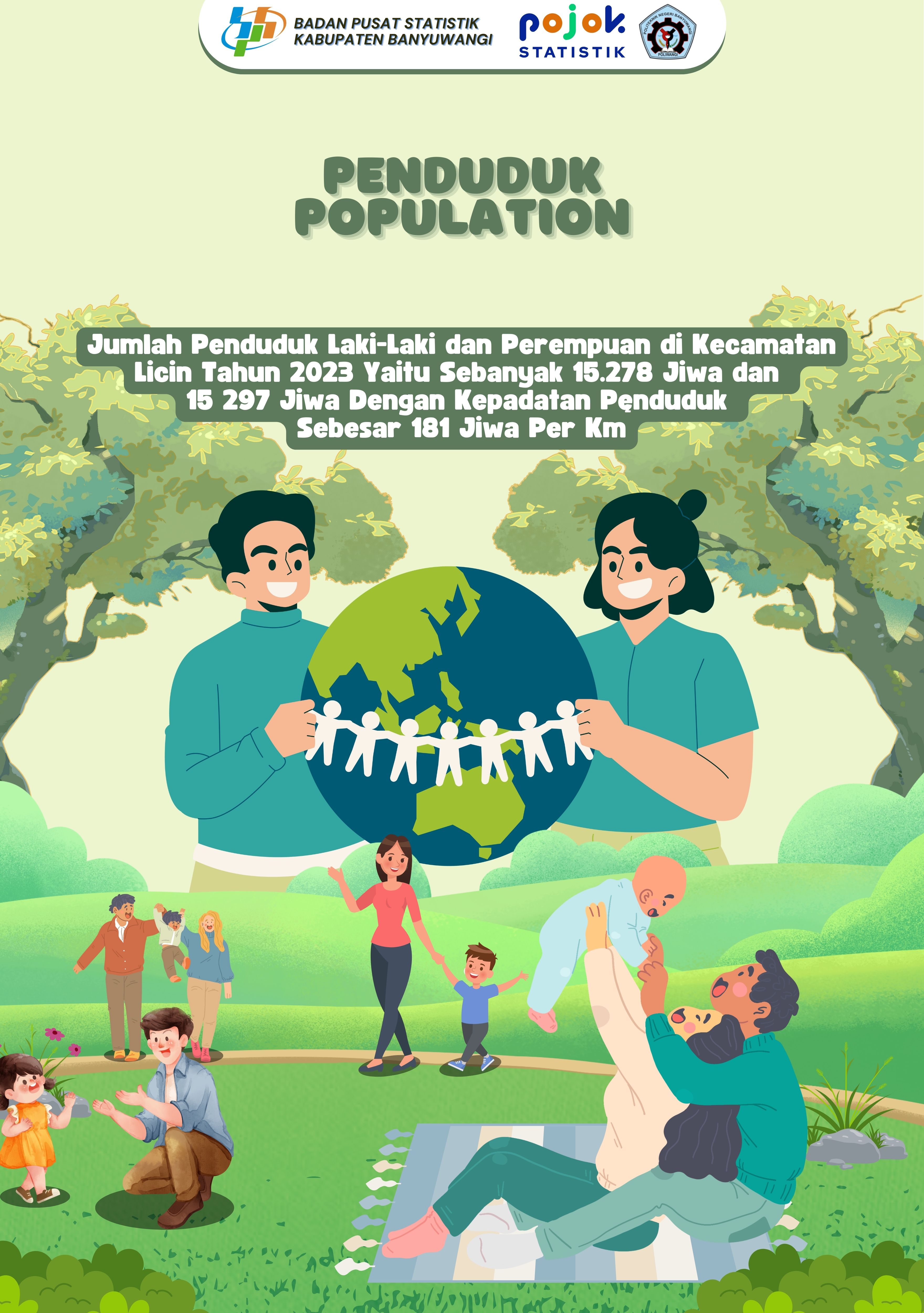 Pada infografis populasi tersebut menampilkan Jumlah Penduduk yang berada di Kecamatan Licin berdasarkan jenis kelamin pada tahun 2023