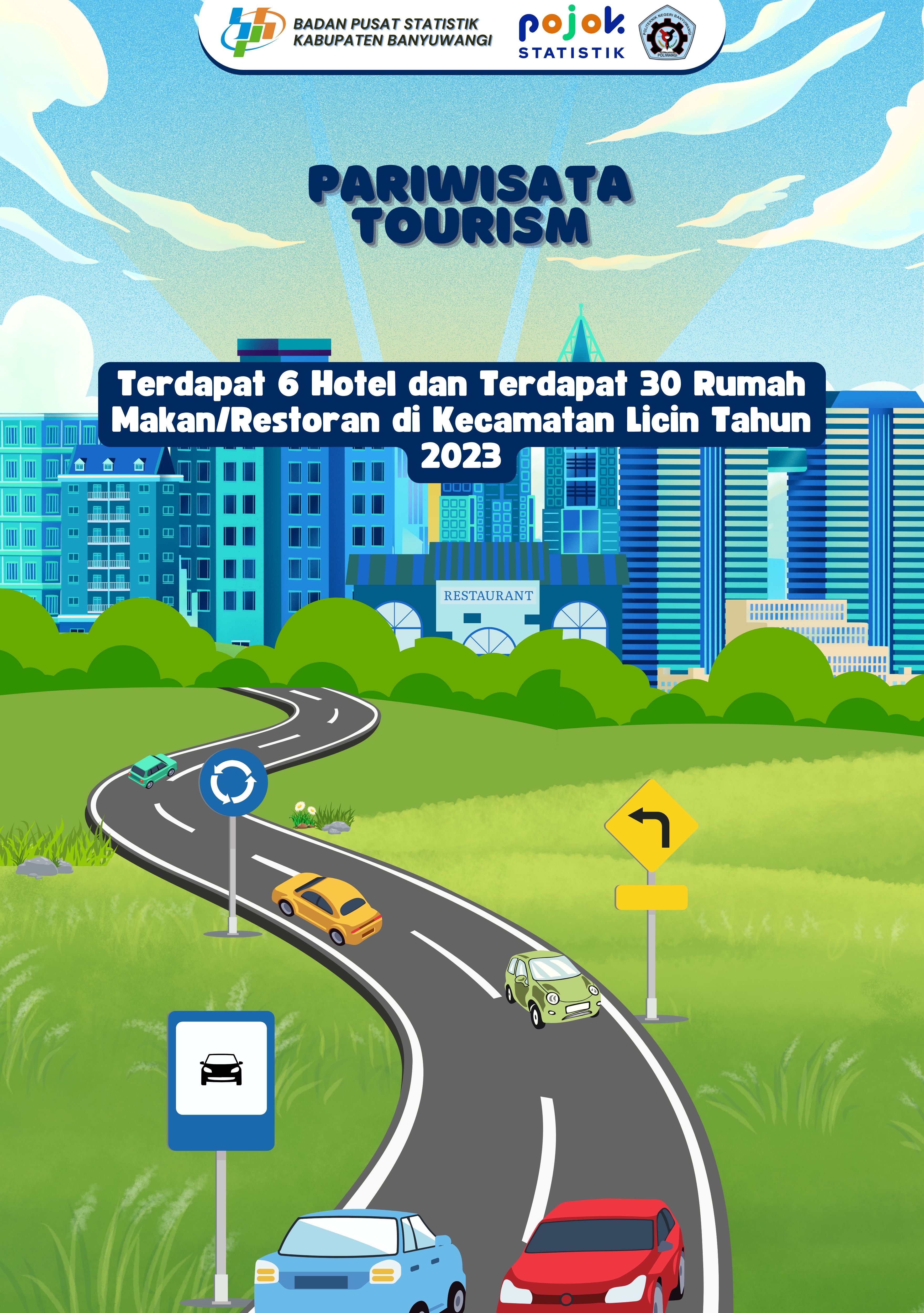 Pada infografis pariwisata tersebut menampilkan jumlah hotel dan rumah makan/restoran di Kecamatan Licin tahun 2023