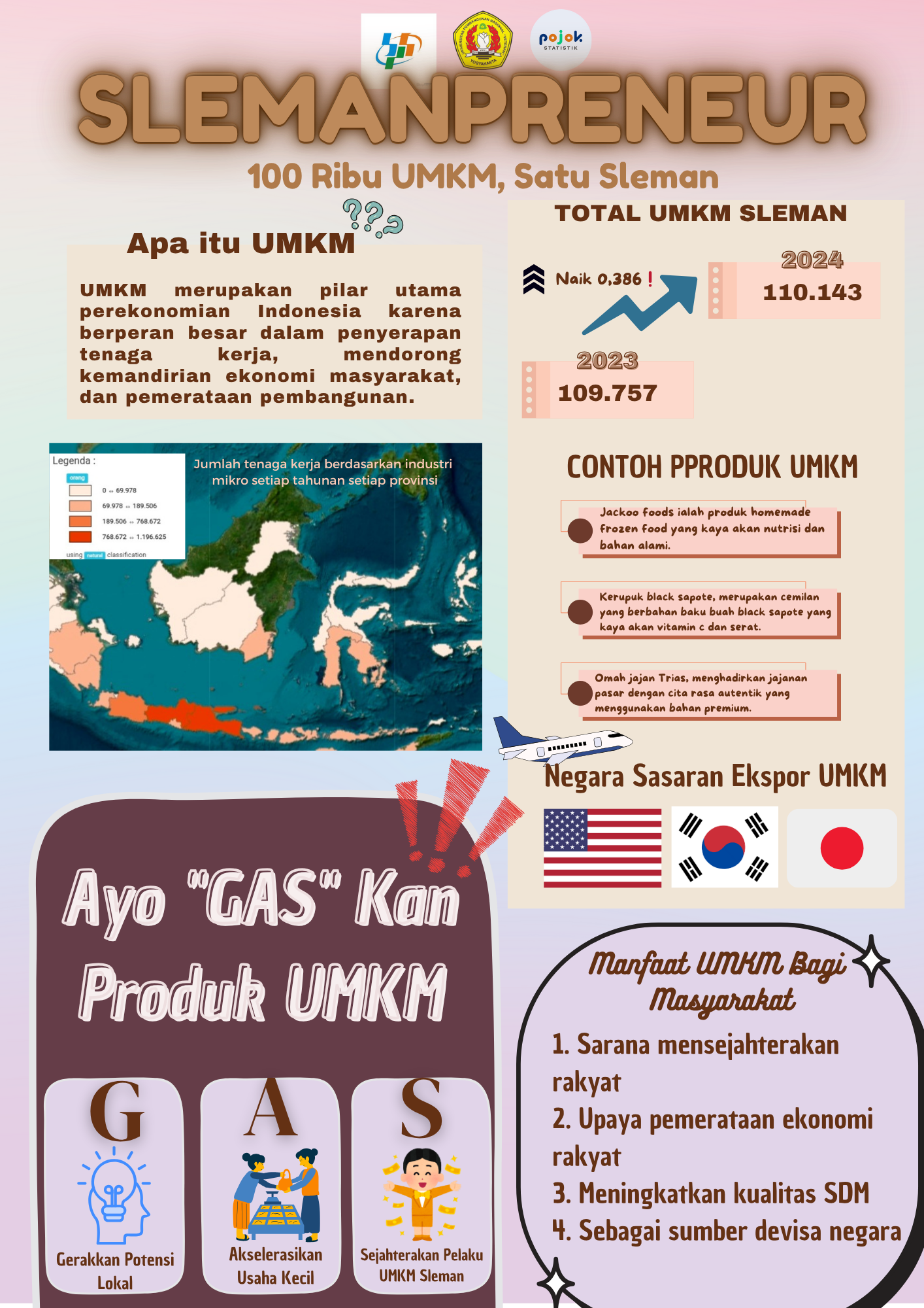 Sleman bergerak bersama UMKM! Jumlah UMKM Sleman naik menjadi 110.143 pada 2024. UMKM menjadi motor penggerak ekonomi, penyerap tenaga kerja, dan lokomotif pemerataan pembangunan. Dari...