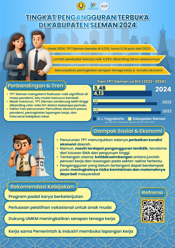 “Pengangguran di Sleman turun lagi, guys! Tahun 2024, TPT turun dari tahun sebelumnya. Artinya, serapan tenaga kerja makin oke dan kondisi ekonomi makin pulih. Meski...