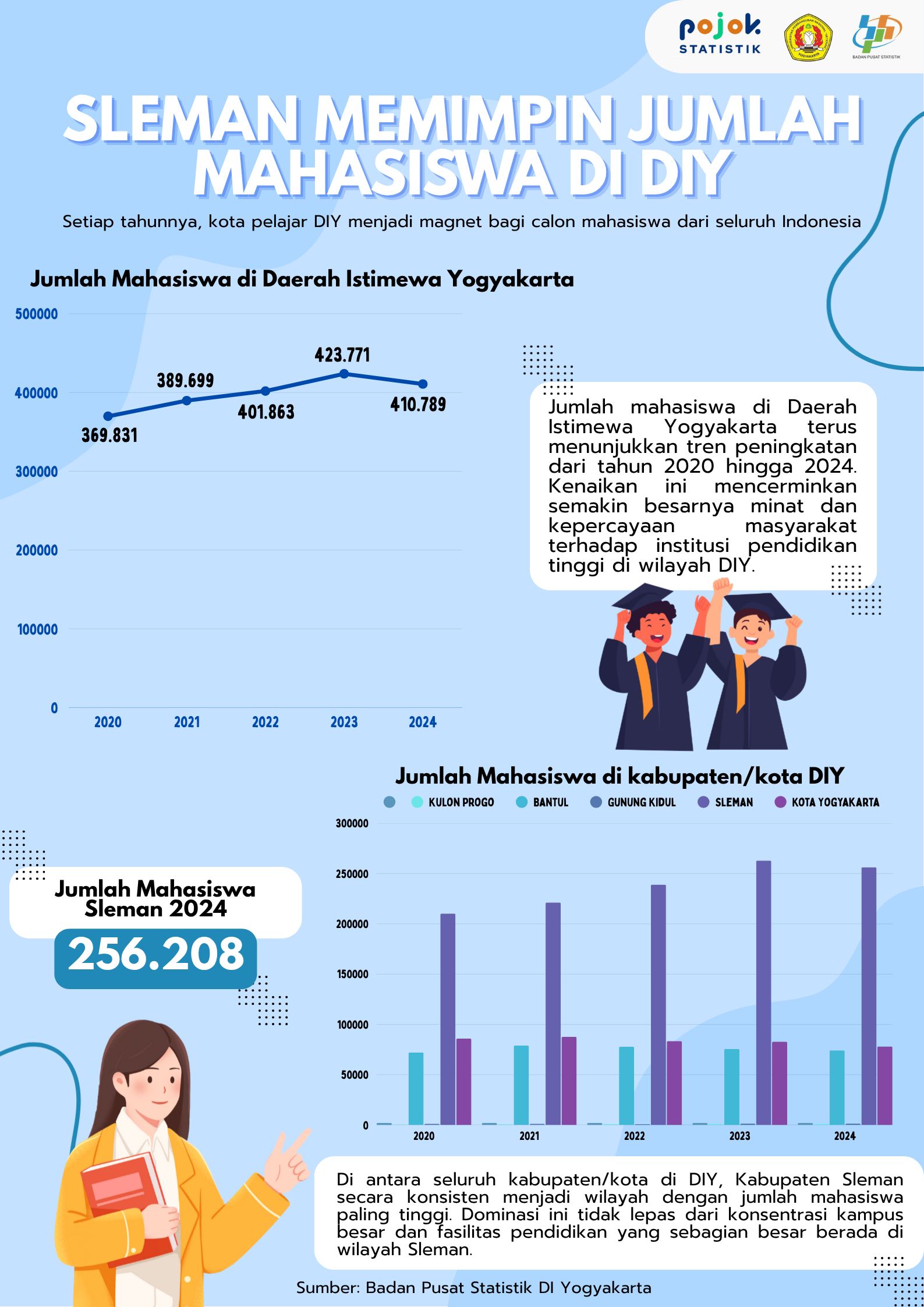 Sleman, pusat pendidikan terbesar di DIY! Pada 2024, jumlah mahasiswa di Sleman mencapai 256.208 orang, menjadikannya kabupaten dengan mahasiswa terbanyak di seluruh DIY. Kenaikan jumlah...
