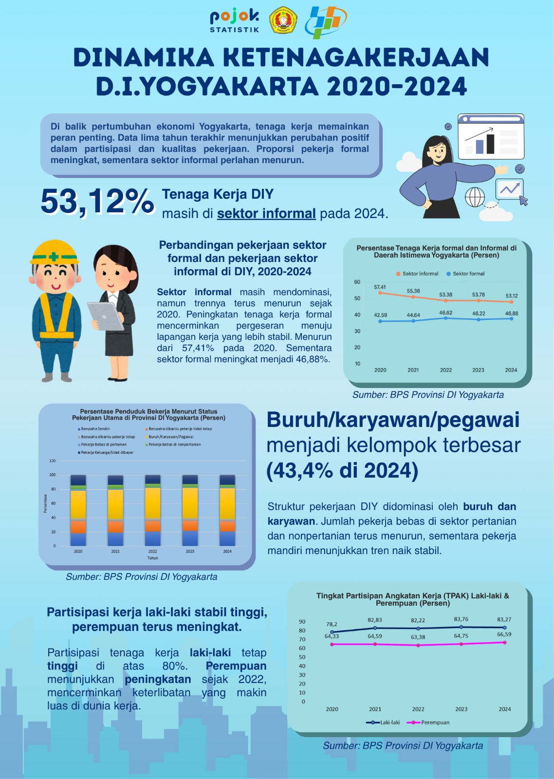 Di balik pertumbuhan ekonomi Yogyakarta, tenaga kerja D.I. Yogyakarta memainkan peran penting. Dalam lima tahun terakhir menunjukan perubahan positif dalam partisipasi dan kualitas pekerjaan.