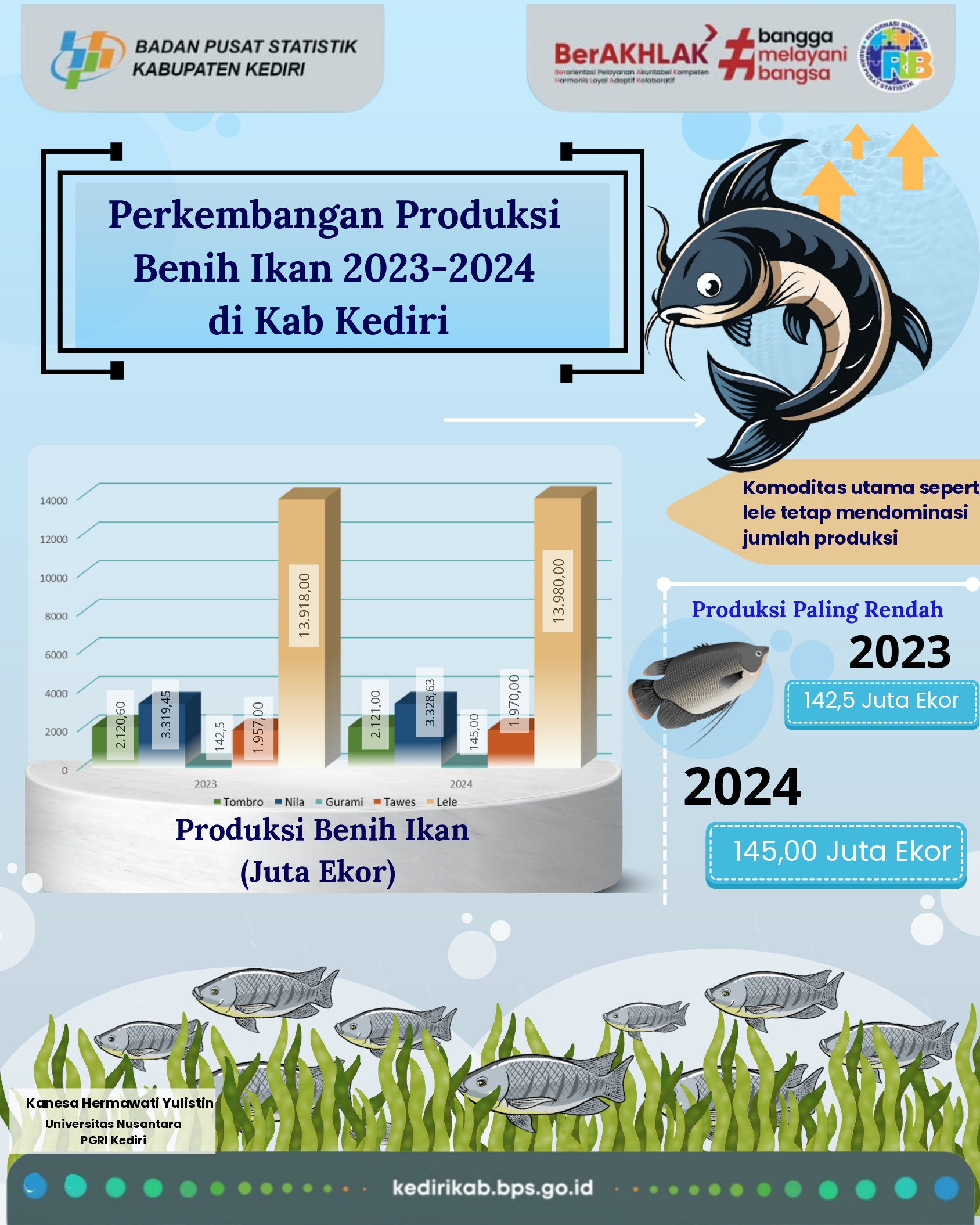 Perkembangan Produksi Benih Ikan 2023-2024 di Kabupaten Kediri