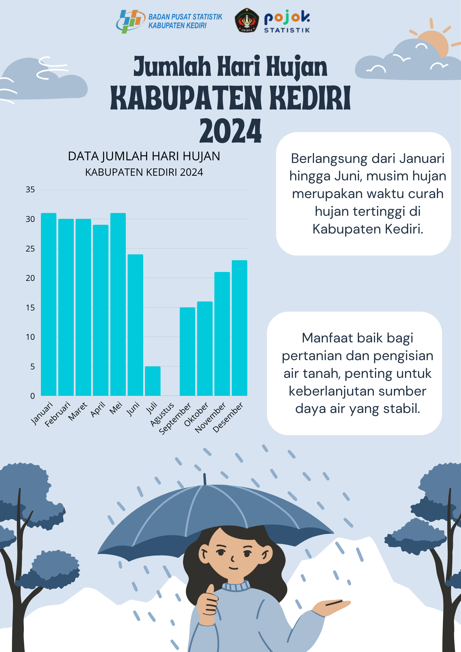 Berlangsung dari Januari hingga Juni, musim hujan merupakan waktu curah hujan tertinggi di Kabupaten Kediri, namun bermanfaat baik bagi pertanian dan pengisian air tanah karena...