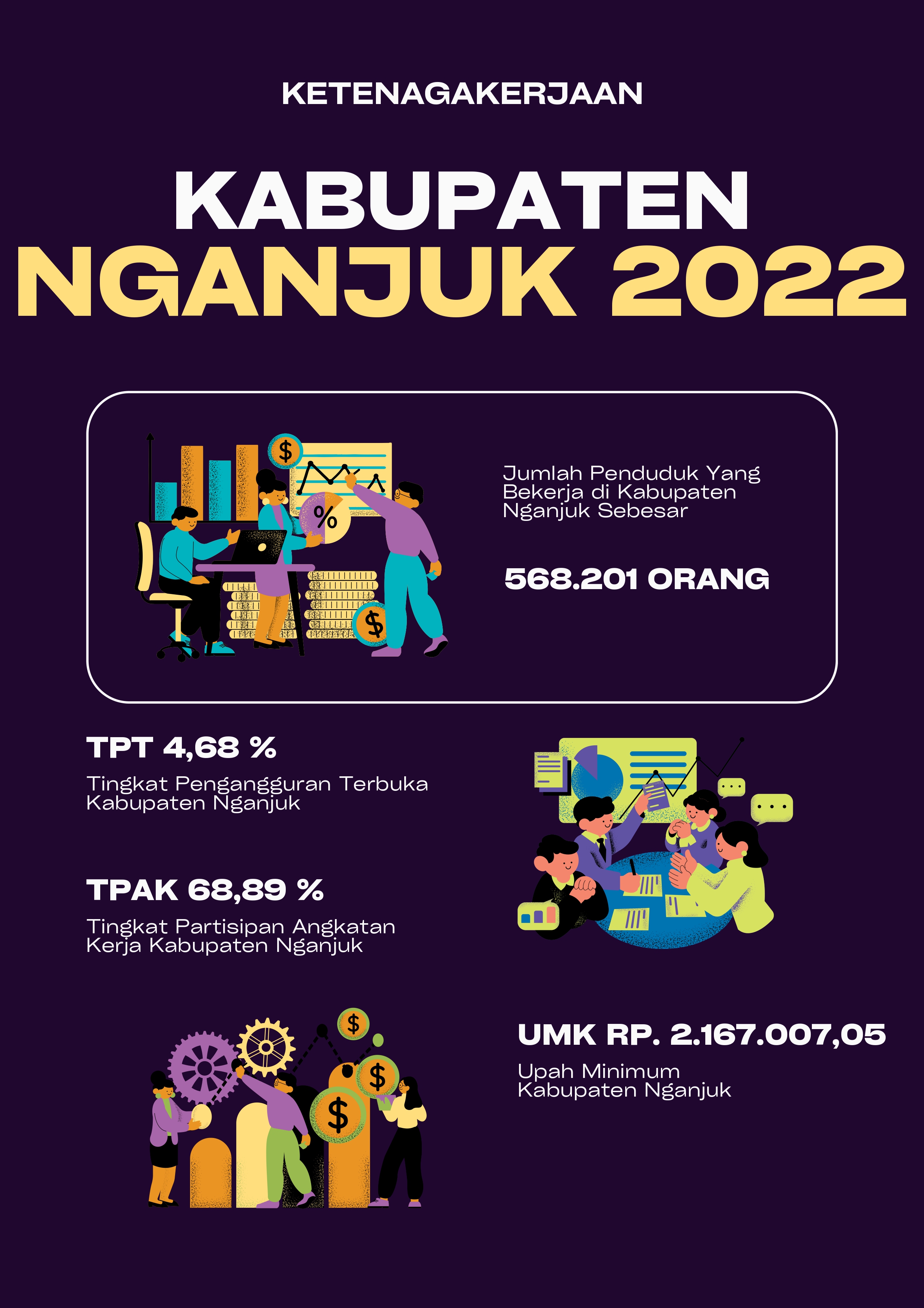 Kondisi ketenagakerjaan di Kabupaten Nganjuk pada tahun 2022 menunjukkan situasi yang cukup stabil dan positif. Jumlah penduduk yang bekerja tercatat sebanyak 568.201 orang, mencerminkan tingkat...
