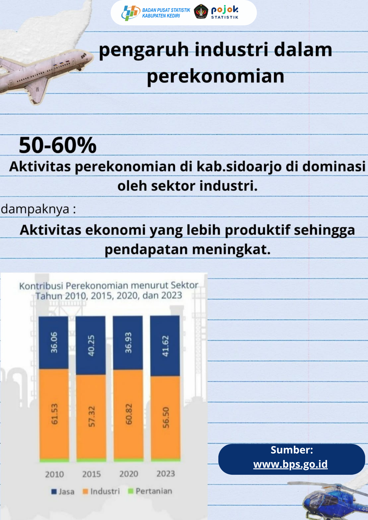 Sektor industri memiliki peranan yang sangat dominan dalam perekonomian Kabupaten Sidoarjo. Sekitar 50–60% aktivitas ekonomi di daerah ini didorong oleh kegiatan industri, menjadikannya sebagai sektor...