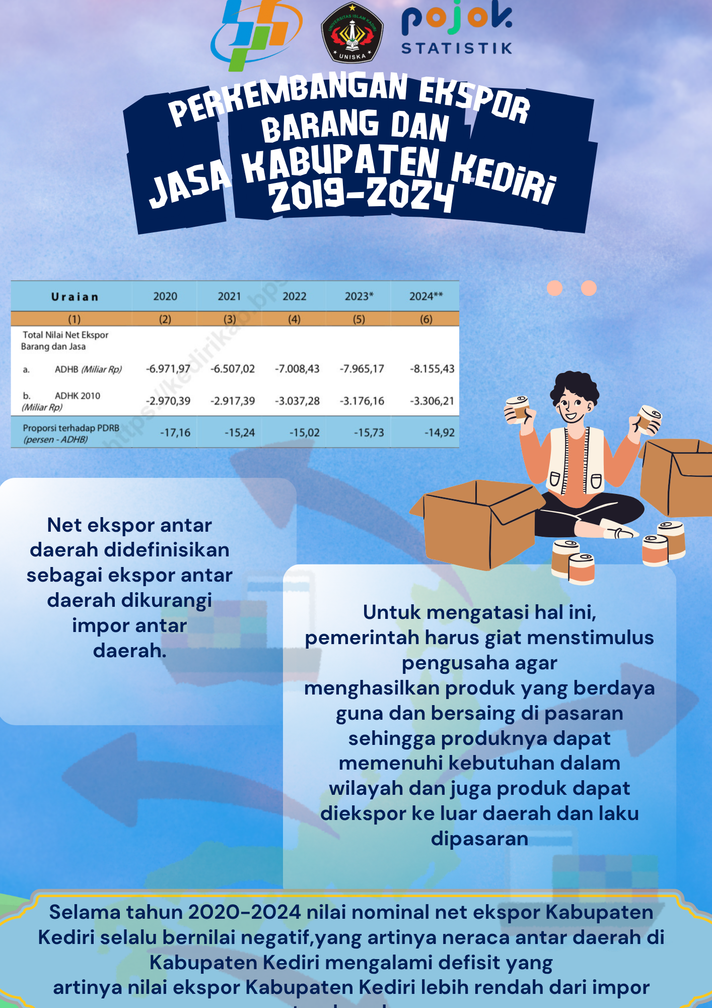 Perkembangan Net Ekspor Barang dan Jasa Kabupaten Kediri 2019-2024