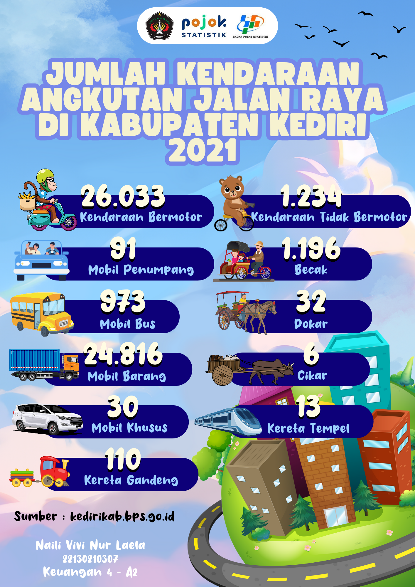 Jumlah Kendaraan Angkutan Jalan Raya Di Kabupaten Kediri 2021