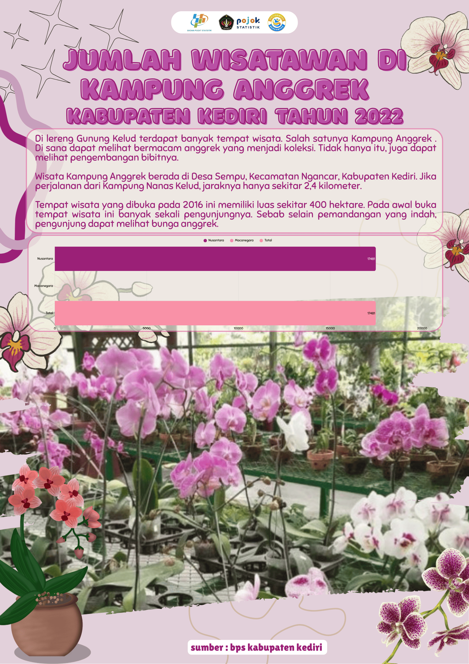 Di Kampung anggrek dapat melihat bermacam anggrek yang menjadi koleksi, tiddak hanya itu disana juga dapat melihat pengembangan bibitnya.