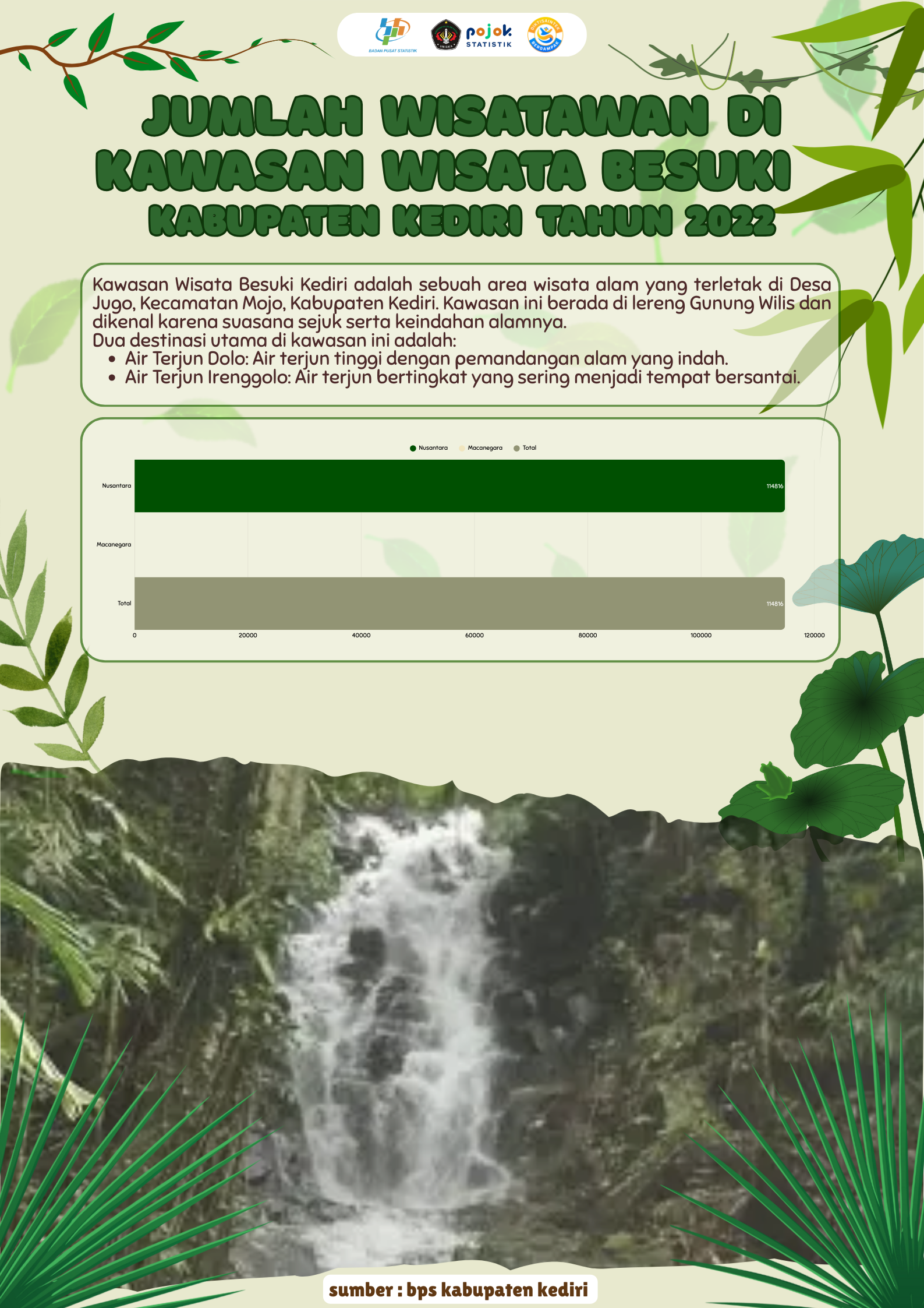 terdapat 2 wisata yaitu air terjun dolo dan air terjun irenggolo.