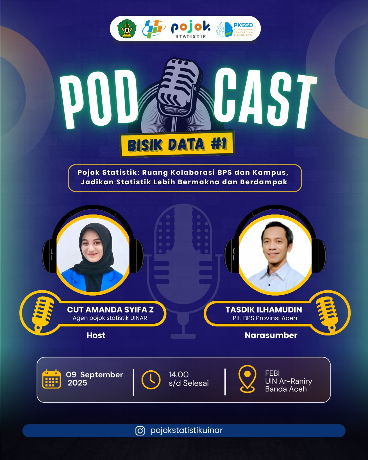 Podcast ini menghadirkan perbincangan seputar kehadiran Pojok Statistik sebagai ruang kolaborasi antara BPS dan kampus. Diskusi membahas latar belakang terbentuknya Pojok Statistik di UIN Ar-Raniry,...