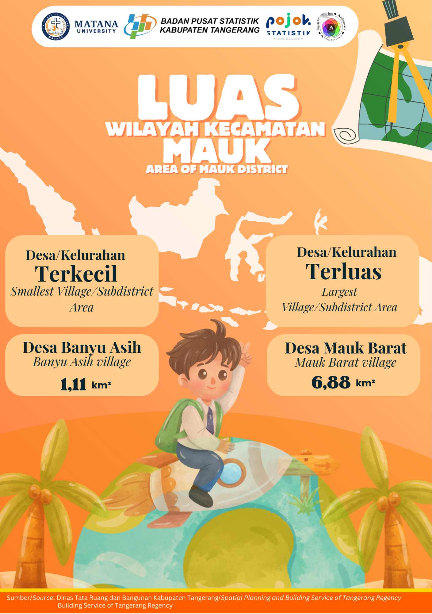 Kecamatan Mauk memiliki variasi luas wilayah yang cukup beragam antar desa/kelurahan. Desa Banyu Asih menjadi wilayah terkecil dengan luas 1,11 km², sedangkan Desa Mauk Barat...