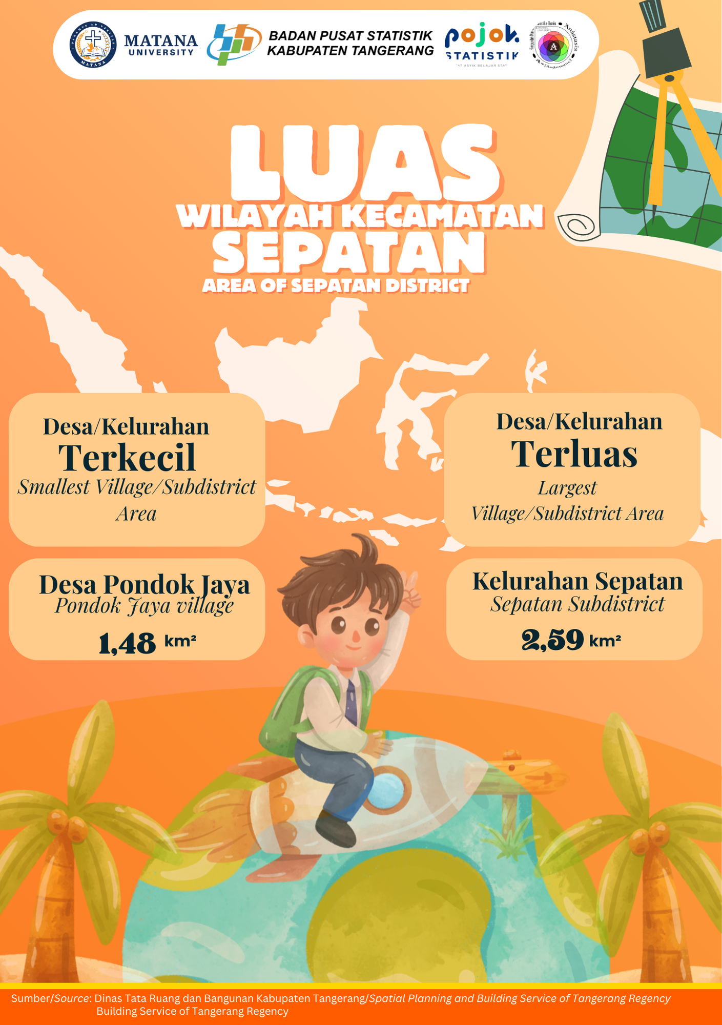"Kecamatan Sepatan Timur memiliki variasi luas wilayah yang cukup beragam antar desa/kelurahan. Desa Pondok Kelor menjadi wilayah terkecil dengan luas 1,36 km², sedangkan Desa Lebak...
