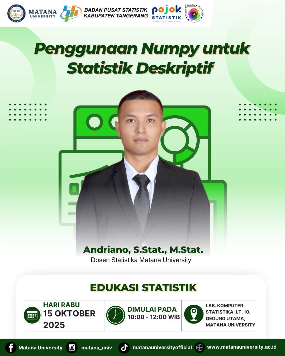 Suatu kegiatan yang mendemonstrasikan pojok statistik kepada mahasiswa Matana University serta mengajak mahasiswa untuk bergabung kedalam agen statistik