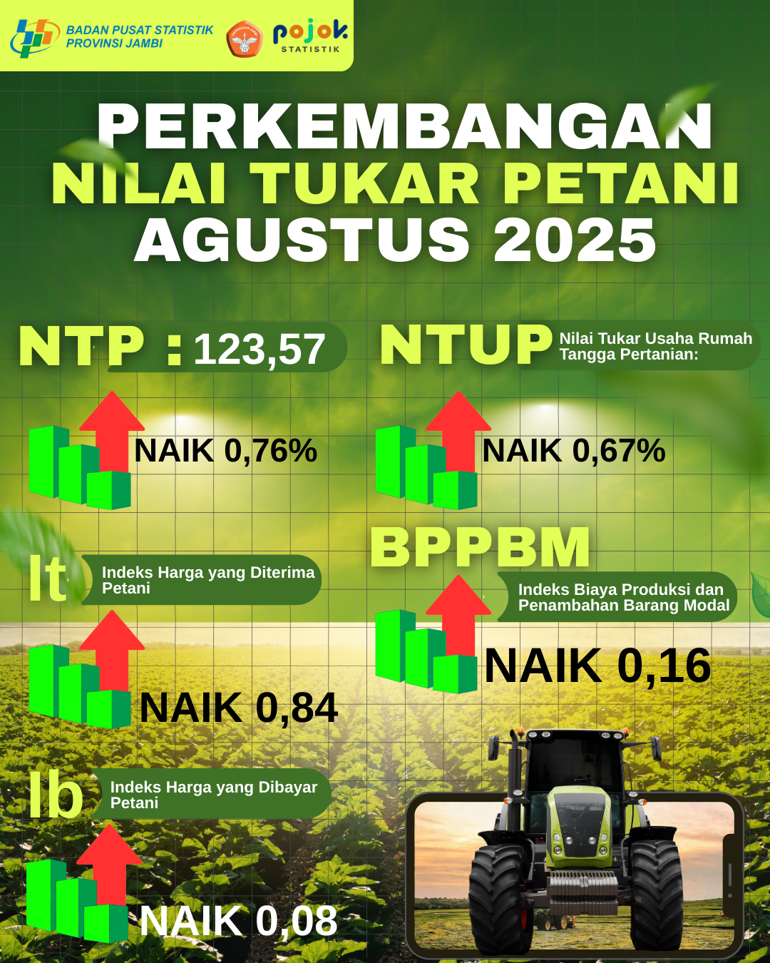 Hai Genstat Selindo!!! Tahukah kamu berapa Nilai Tukar Petani Provinsi Jambi pada Agustus 2025?? Yuuk simak infografis berikut