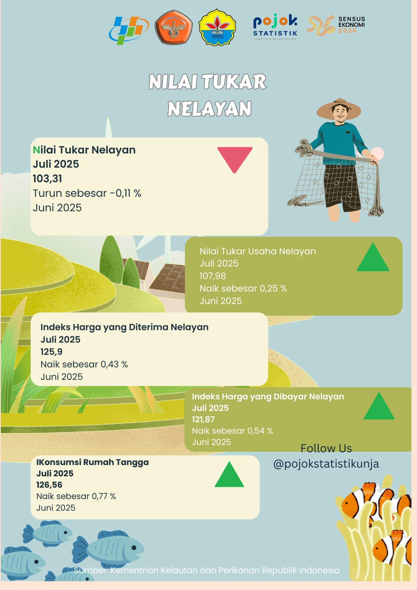 Selain Nilai TUkar Petani, ada juga Nilai Tukar Nelayan atau NTN. Kamu bisa mengetahui Nilai NTN di Provinsi Jambi dari infografis berikut.