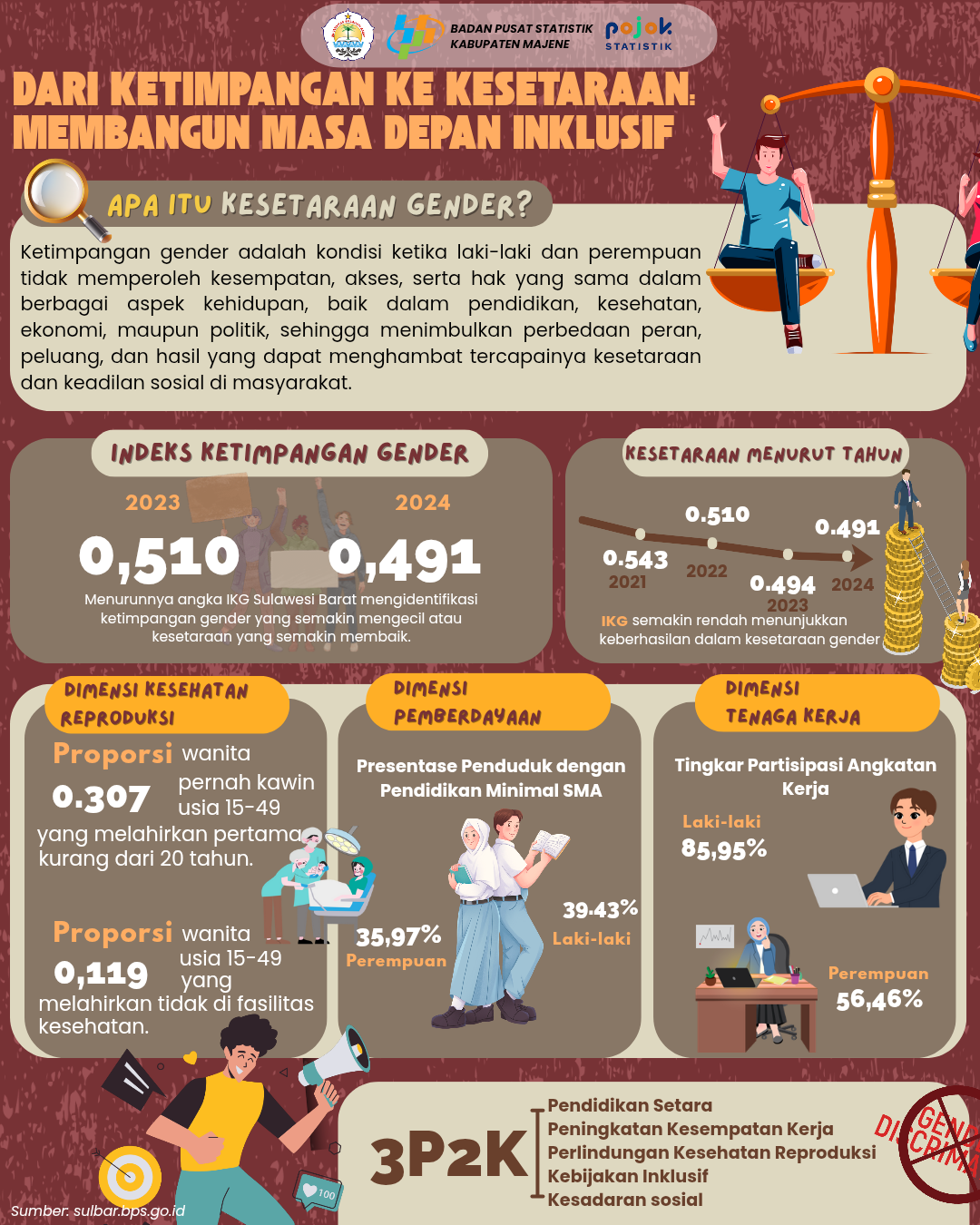 📊 Indeks Ketimpangan Gender (IKG) Sulawesi Barat masih menunjukkan adanya kesenjangan antara laki-laki dan perempuan dalam bidang kesehatan, pendidikan, politik, dan ekonomi. Diperlukan upaya bersama...