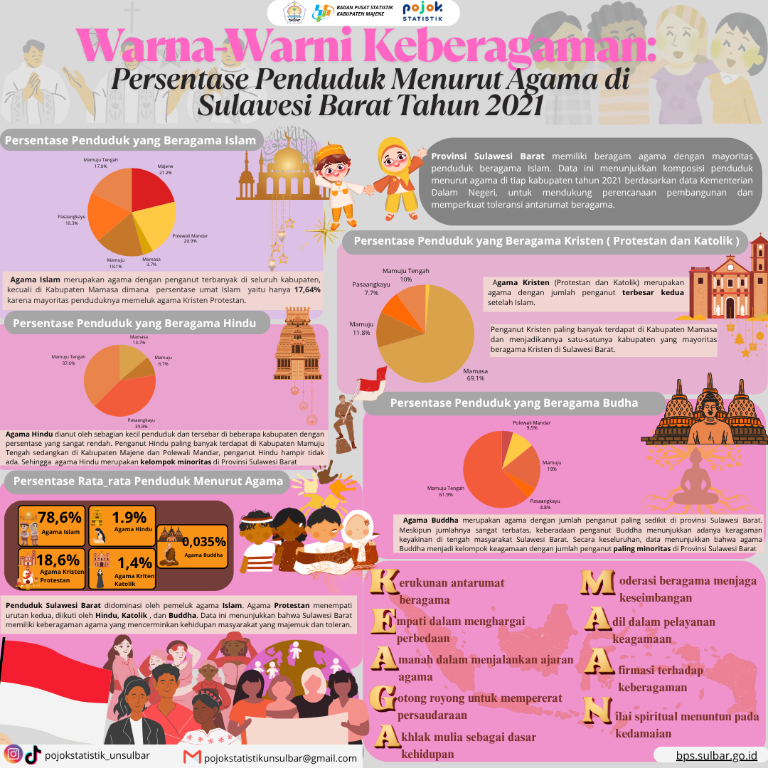 Tahukah kamu? 🤔 Provinsi Sulawesi Barat memiliki keberagaman agama di tengah mayoritas penduduk yang memeluk agama Islam. Berdasarkan data tahun 2021, persentase penduduk menurut agama...