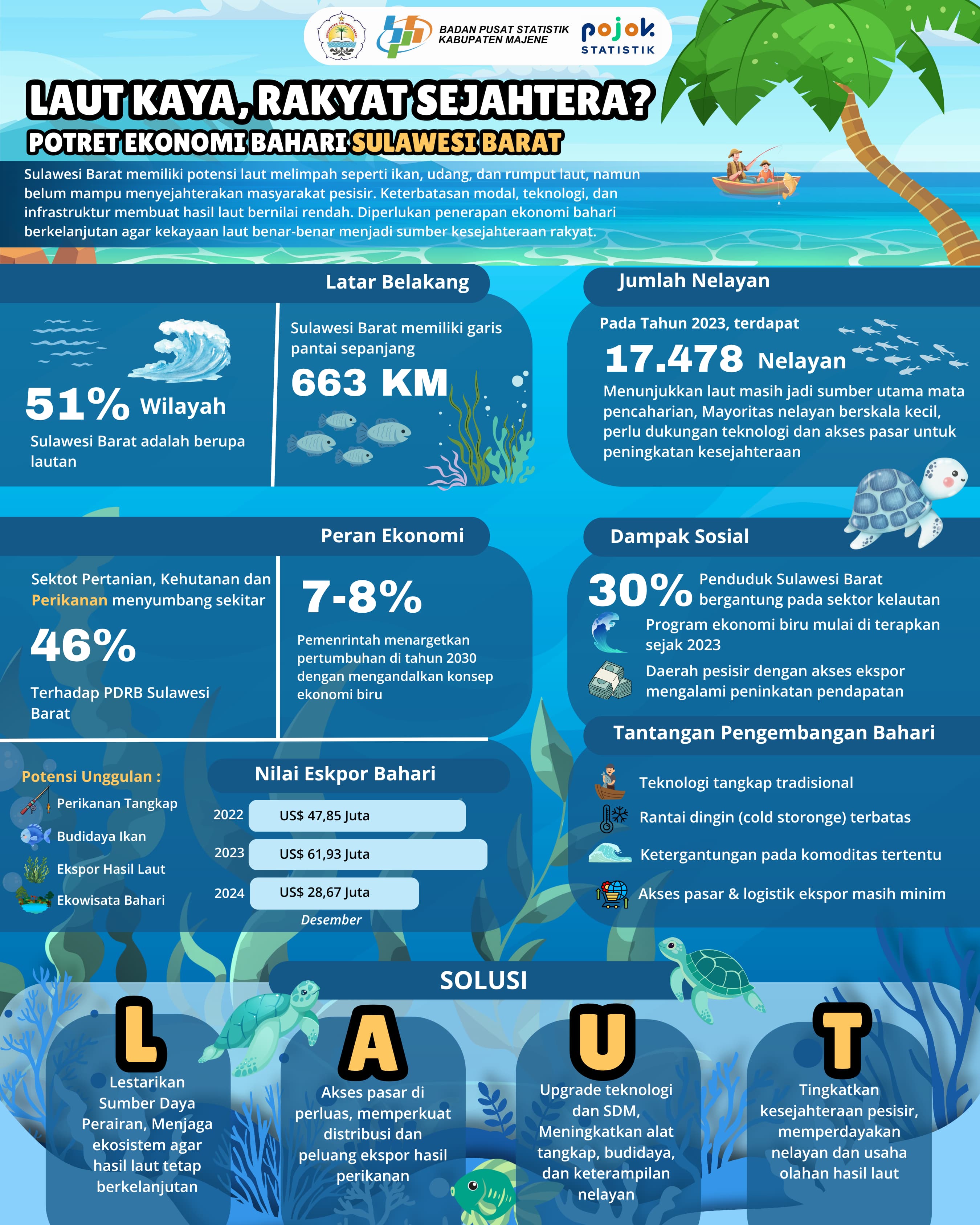 Melalui ekonomi bahari berkelanjutan, peningkatan teknologi, dan akses pasar yang adil, laut bukan hanya sumber daya—tetapi masa depan kesejahteraan. Saatnya LAUT jadi solusi: Lestarikan, Akses...