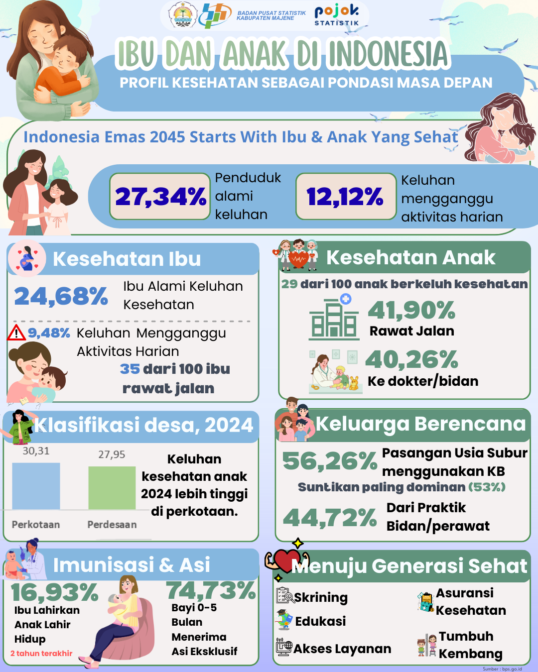 Kesehatan ibu dan anak adalah pondasi masa depan bangsa. Data ini menunjukkan kondisi kesehatan ibu & anak di Indonesia, mulai dari keluhan kesehatan, akses layanan,...