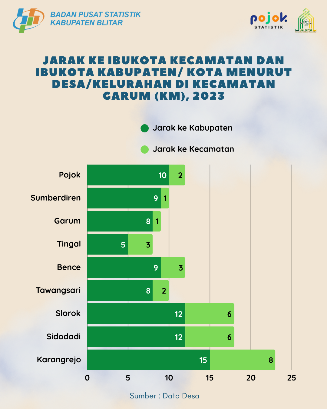 Jarak ke Ibukota Kecamatan Dan Ibukota Kabupten/kota Menurut kecamatan Garum 2023