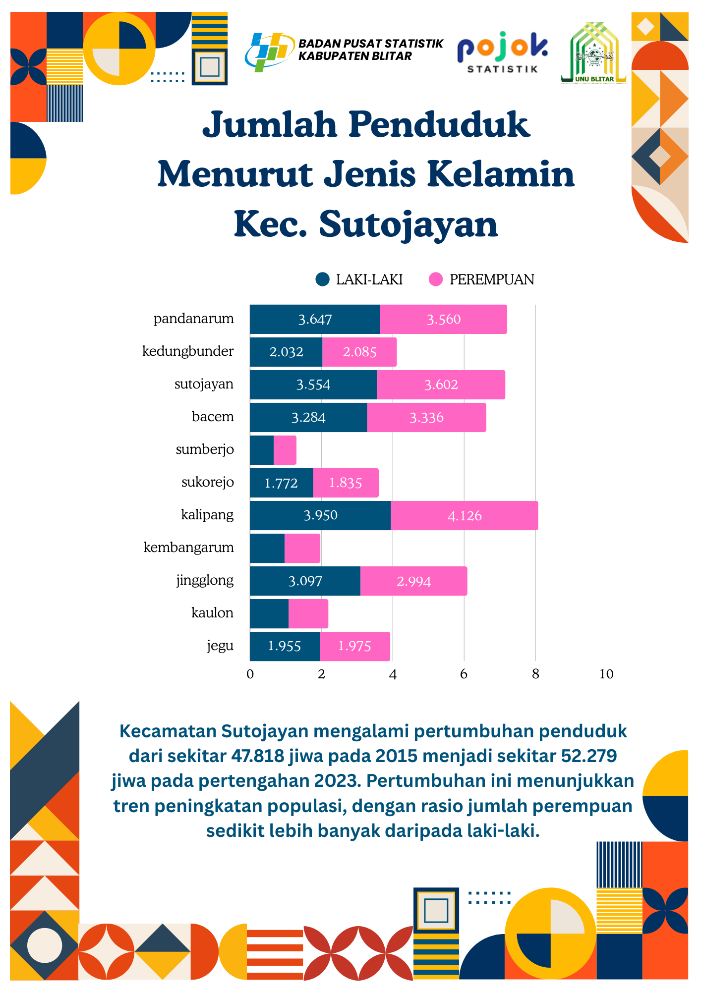 Jumlah Penduduk Menurut Jenis Kelamin Kecamatan Sutojayan