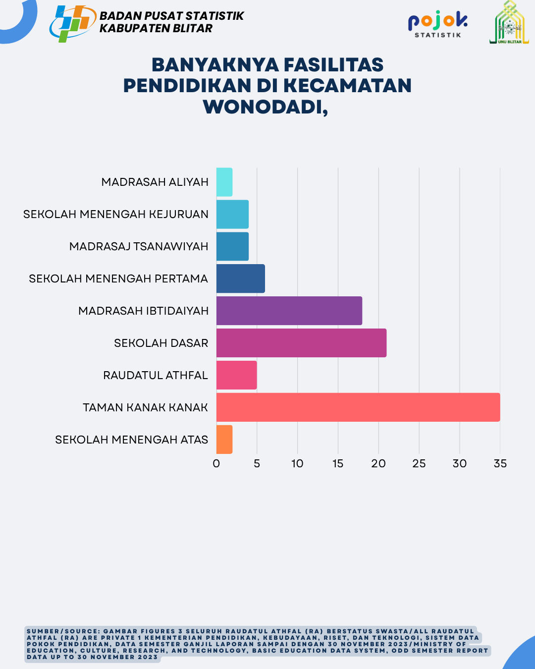 Jumlah Sekolah, Guru, dan Murid Raudatul Athfal RA di Bawah Kemenag di Kabupaten Blitar